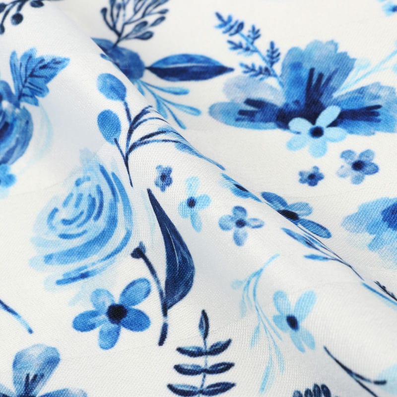White And Blue Floral Pattern Digital Print Crepe Satin Fabric