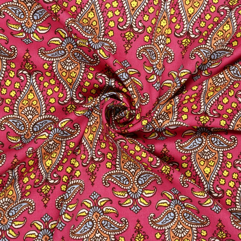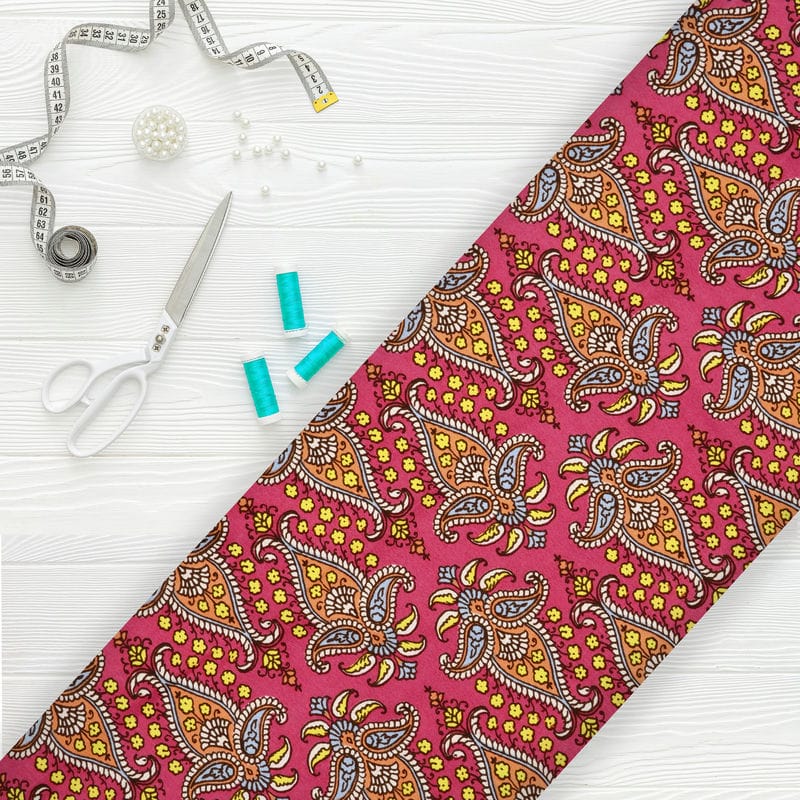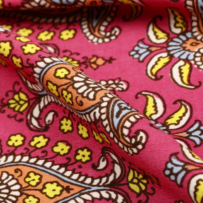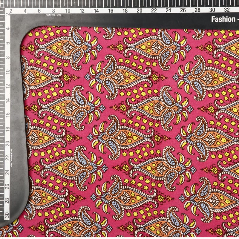 Dark Pink And Yellow Traditional Pattern Screen Print Crepe Fabric