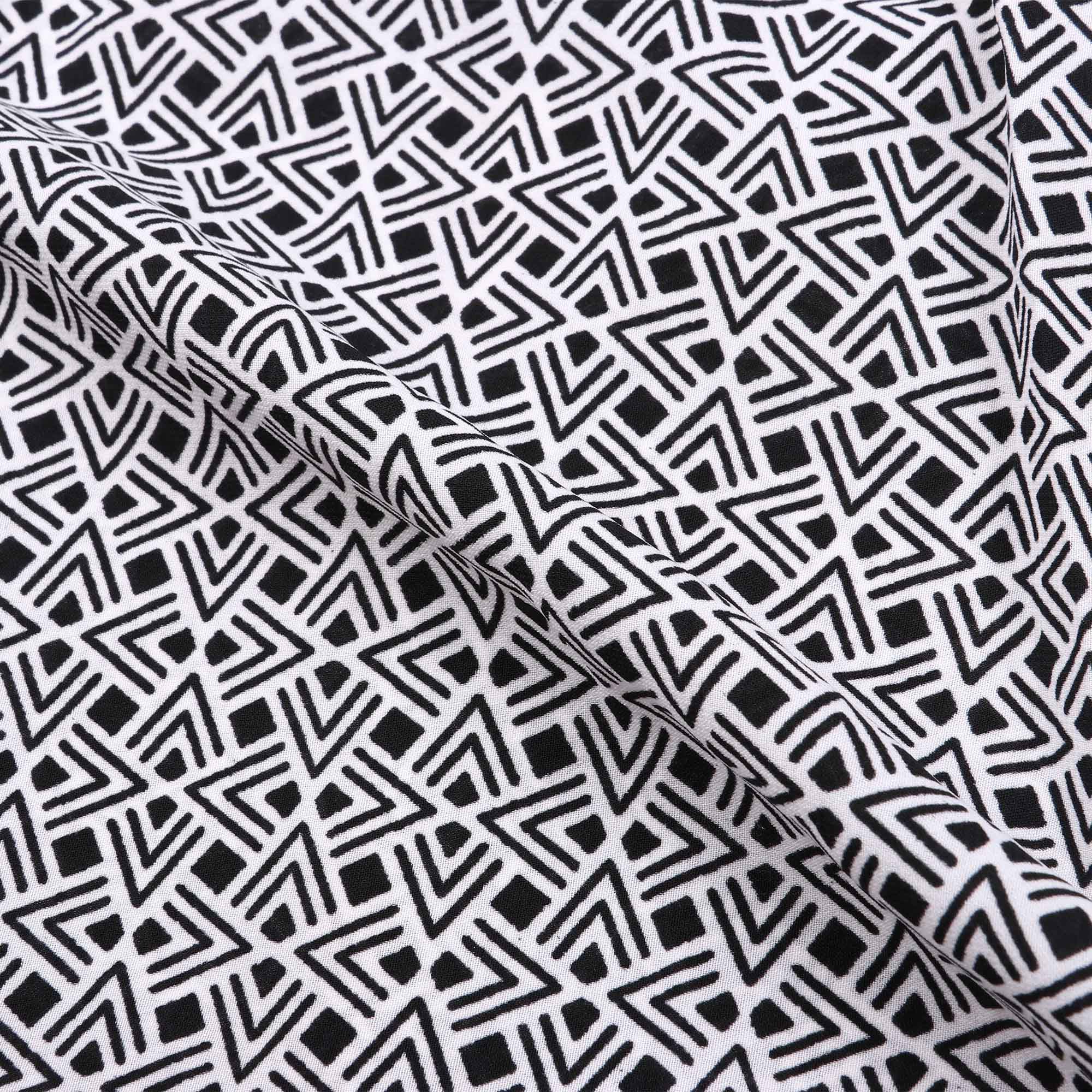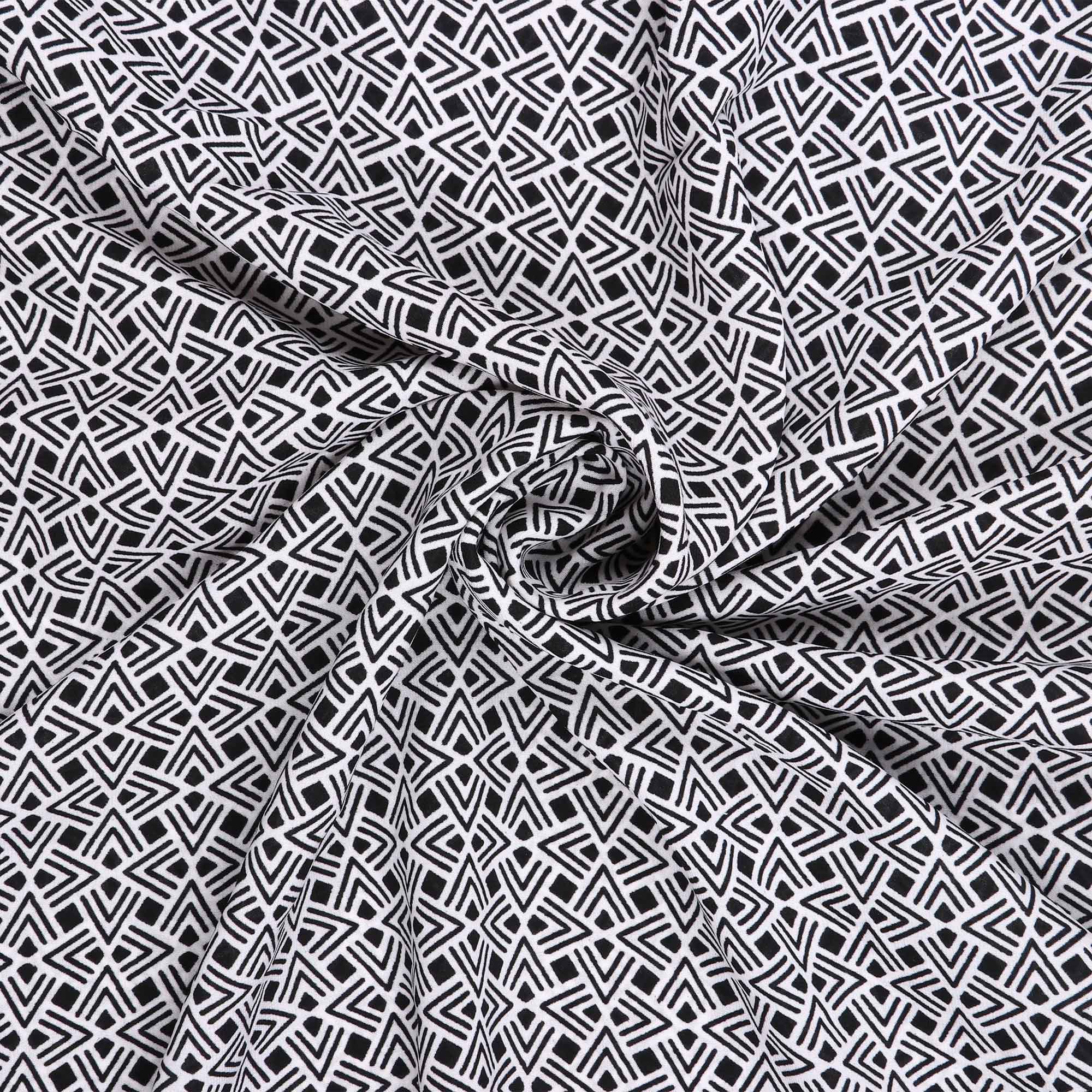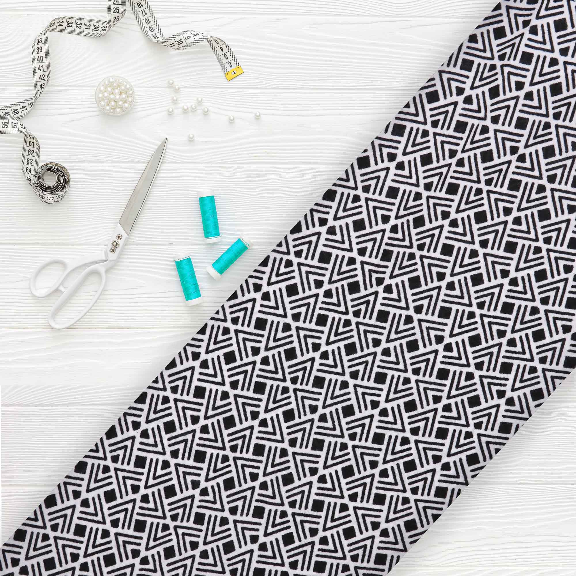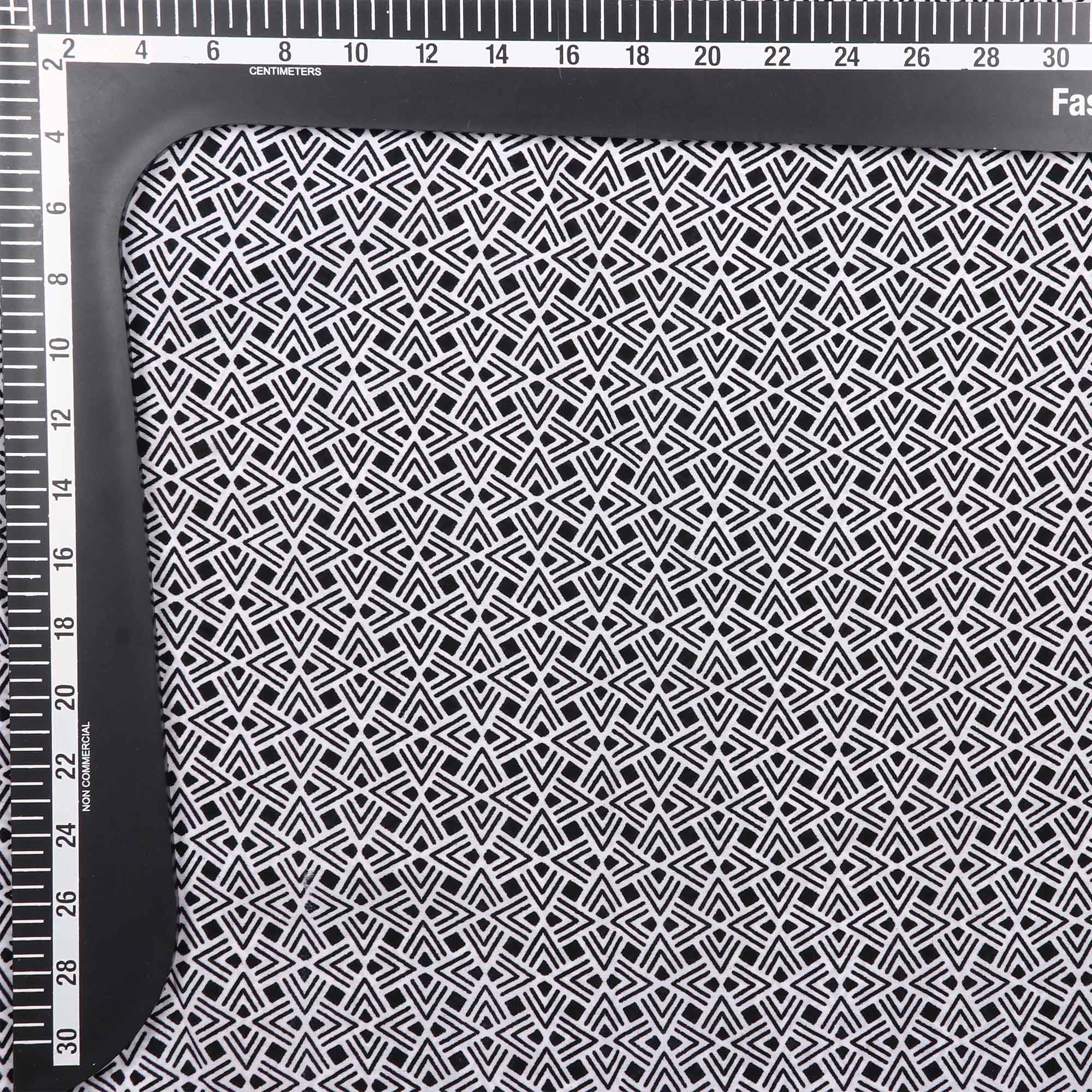 White And Black Geometric Pattern Screen Print Crepe Fabric
