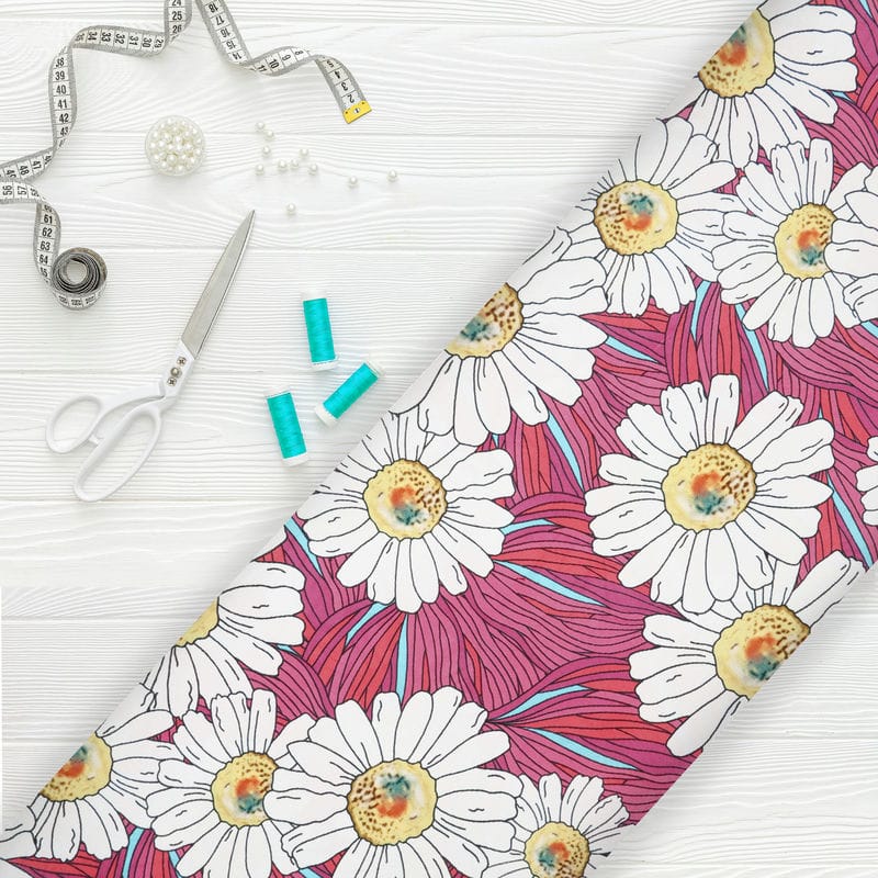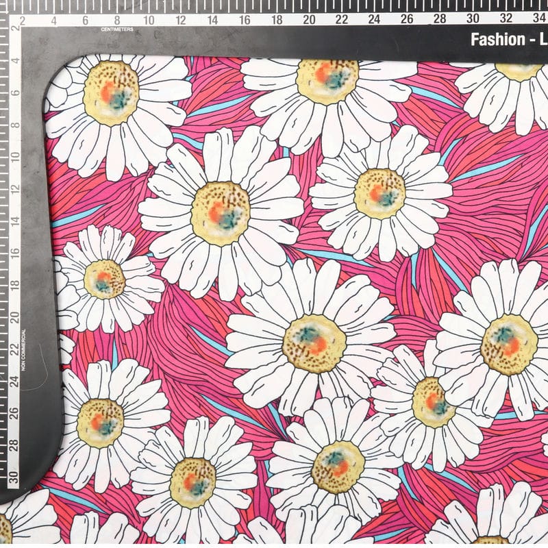 White And Pink Floral Pattern Screen Print Crepe Fabric