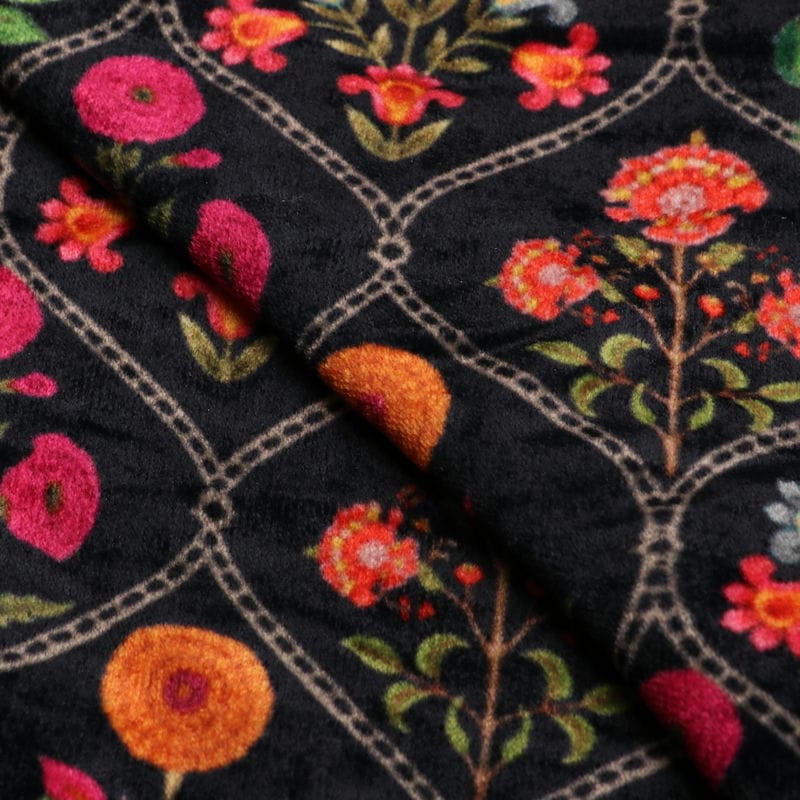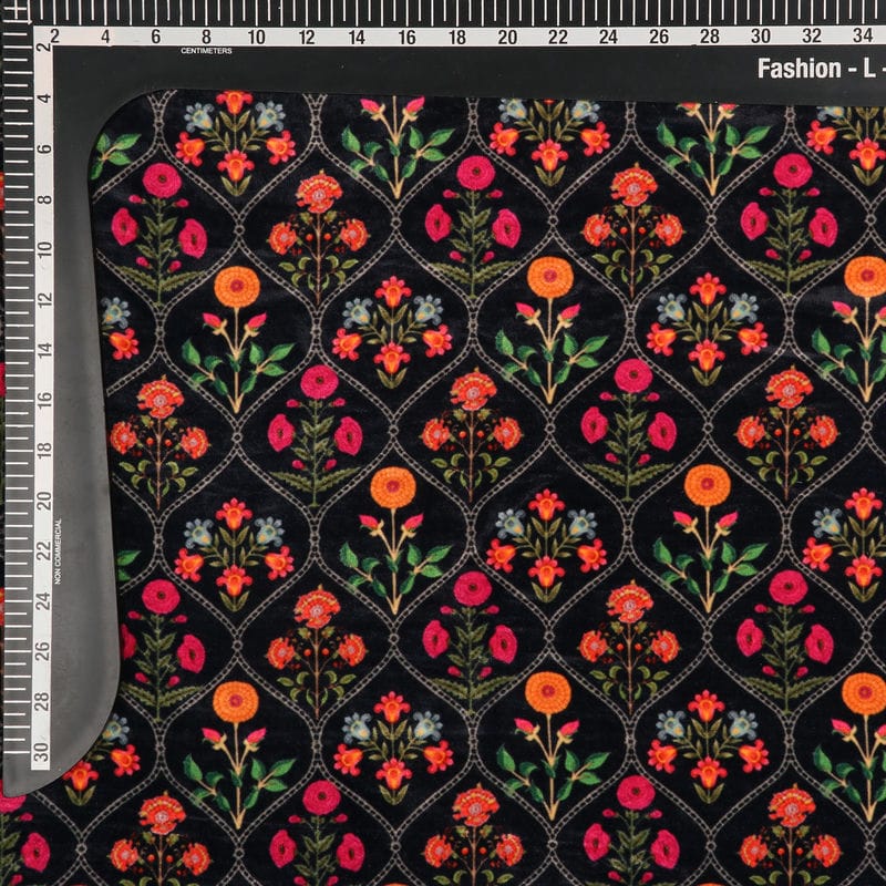 Dark Blue And Bright Pink Floral Pattern Digital Print Velvet Fabric