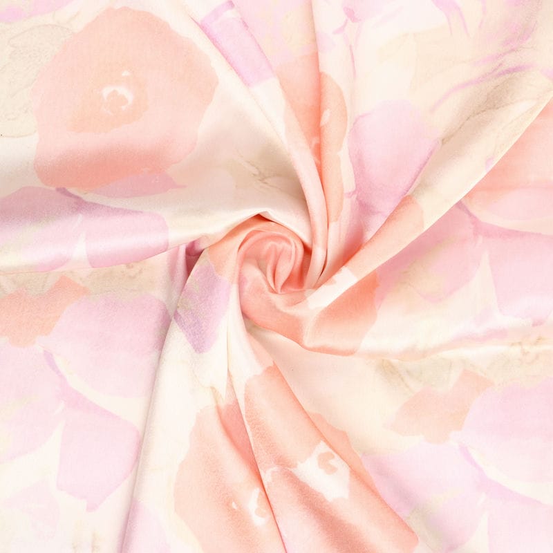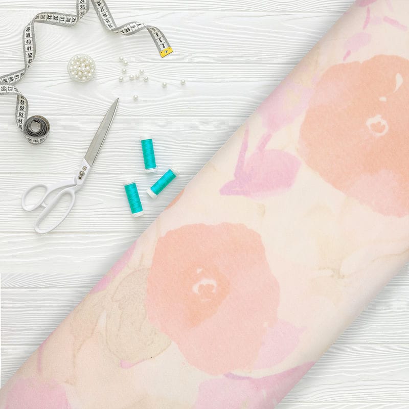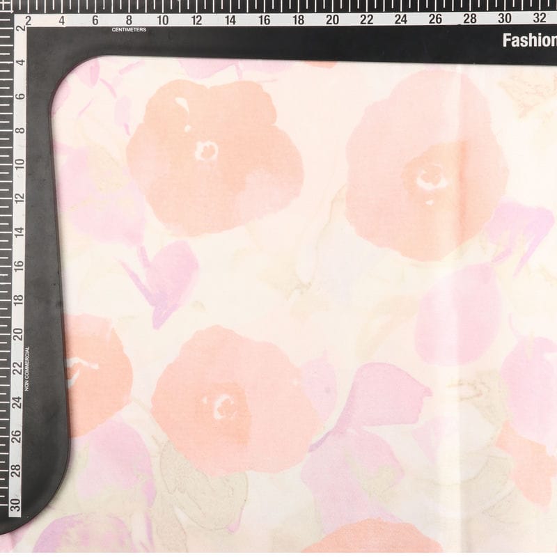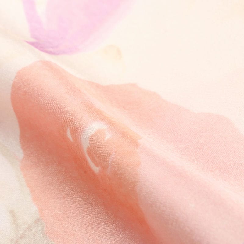 Dusty Peach And Light Beige Floral Pattern Digital Print Japan Satin Fabric