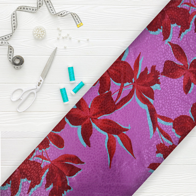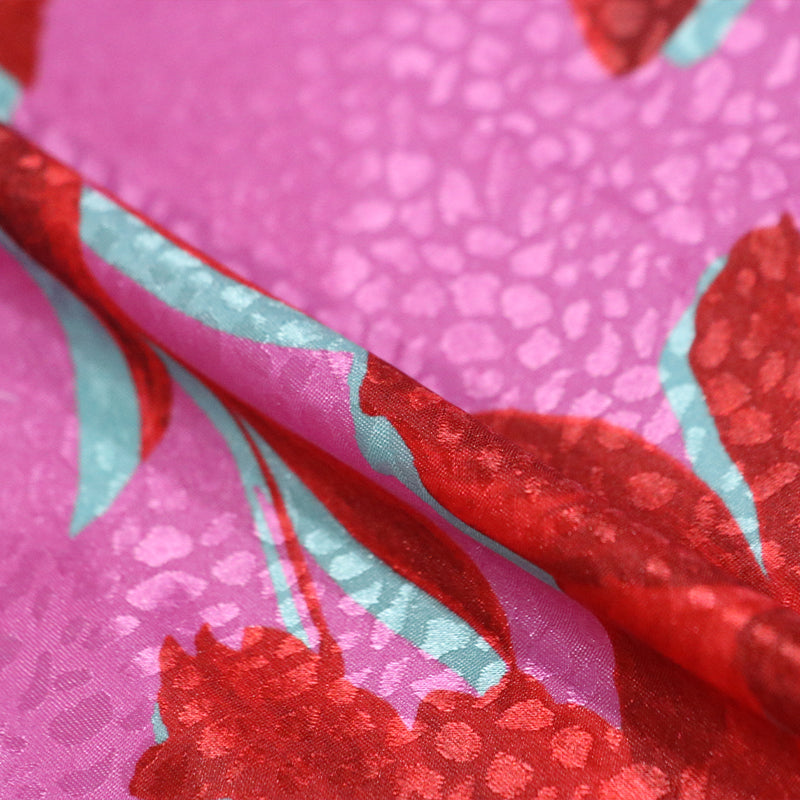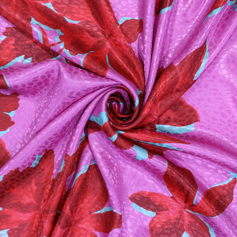 Pink And Red Floral Pattern Digital Print Satin Jacquard Fabric