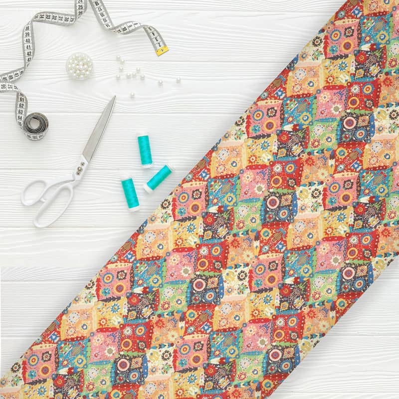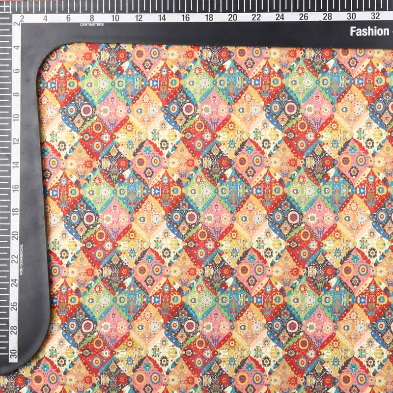 Red And Yellow Geometric Pattern Digital Print Japan Satin Fabric