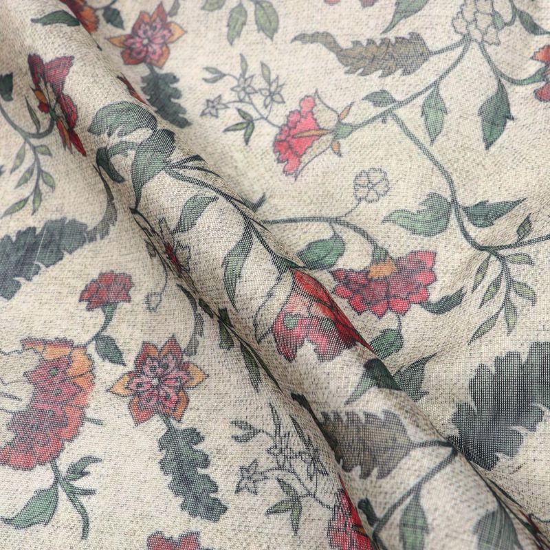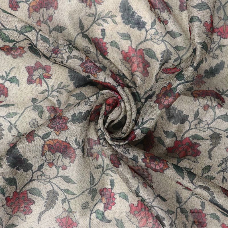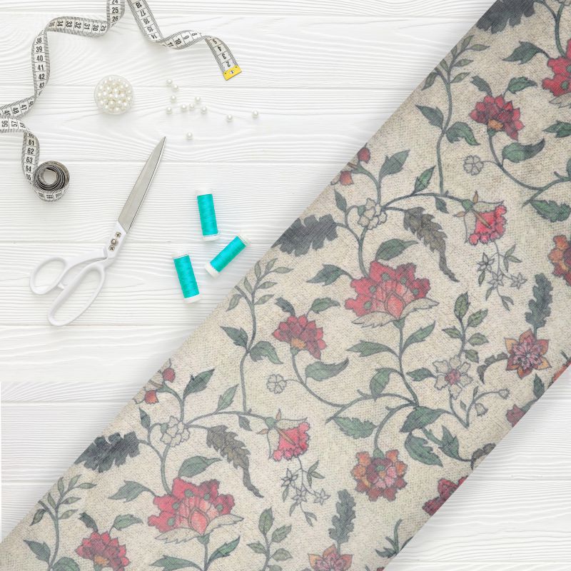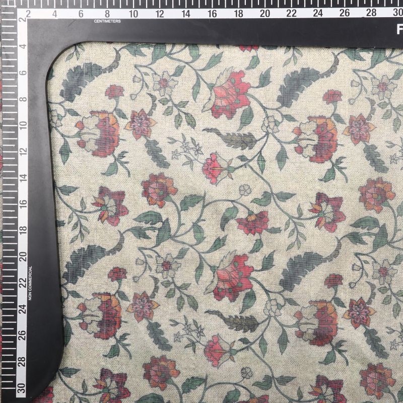 Tea Green And Red Floral Pattern Digital Print Chanderi Fabric