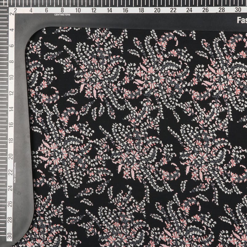 Black And Pink Floral Pattern Screen Print Cotton Fabric