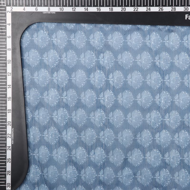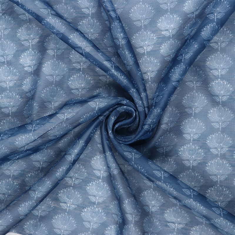 Blue And White Floral Pattern Digital Print Chanderi Fabric