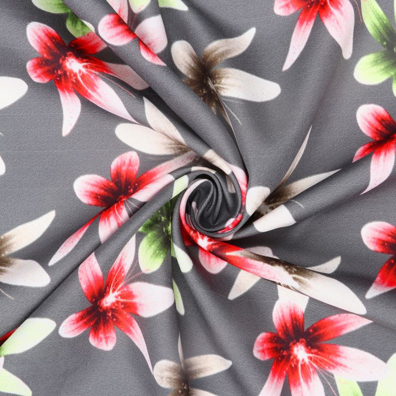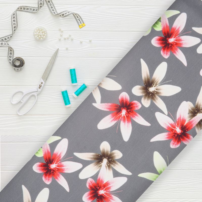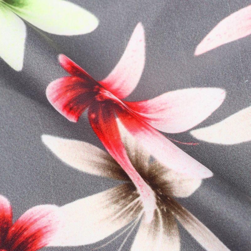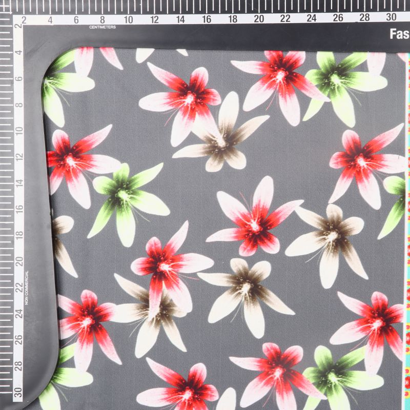 Dark Grey And Red Floral Pattern Digital Print Crepe Fabric