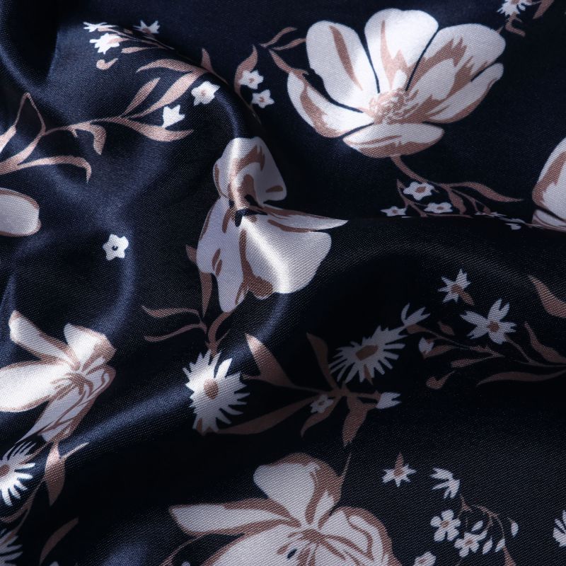 Dark Navy Blue And Light Brown Floral Pattern Digital Print Ultra Satin Fabric