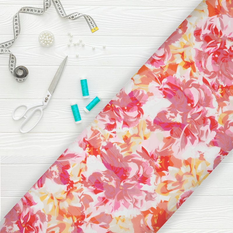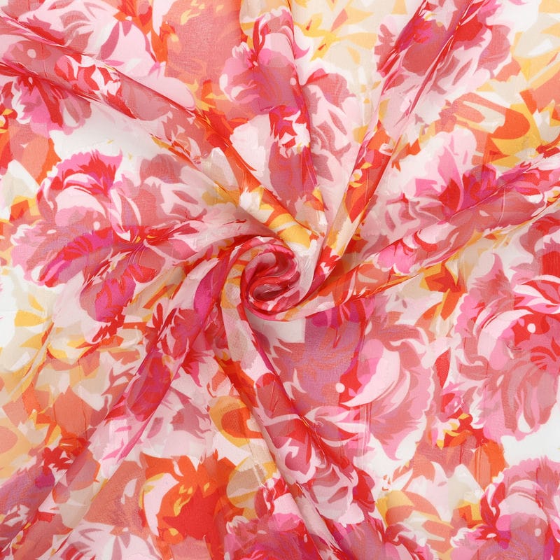 Dark Pink And Yellow Floral Pattern Digital Print Georgette Jacqaurd Fabric
