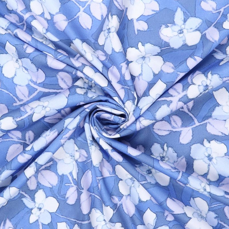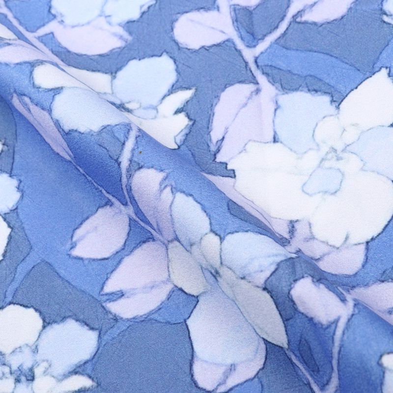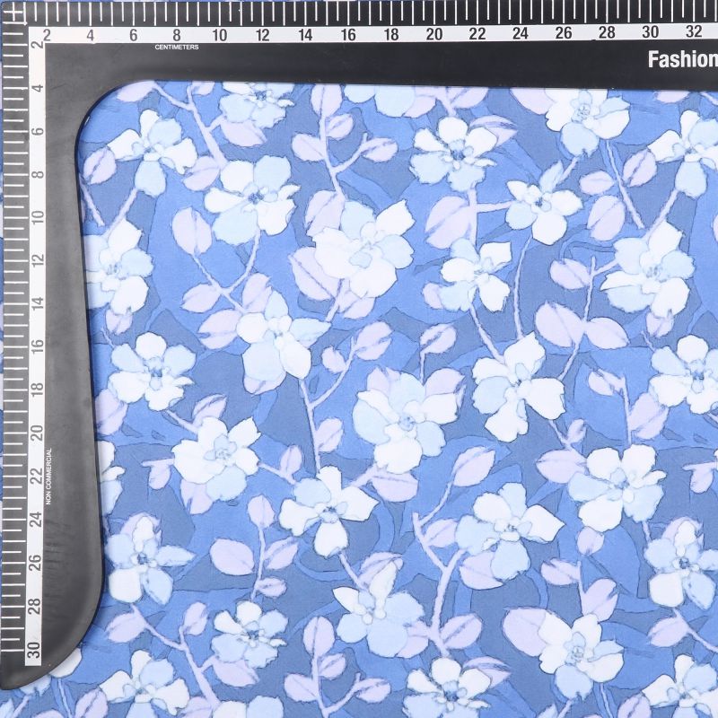 Light Blue And White Floral Pattern Digital Print Crepe Fabric