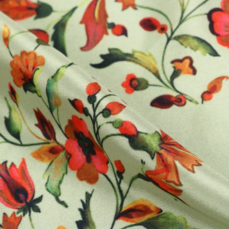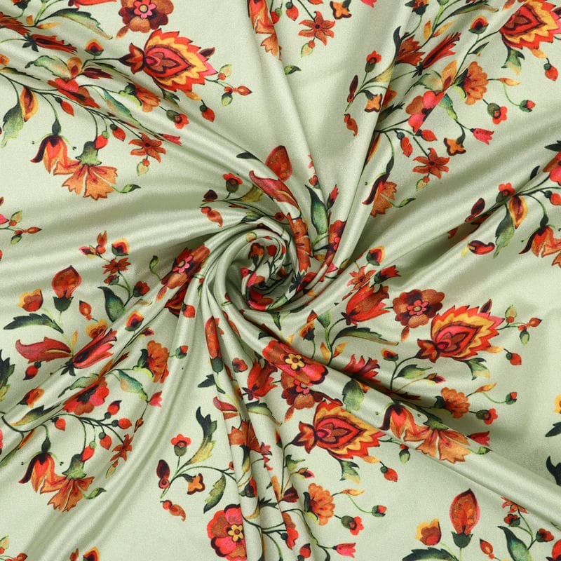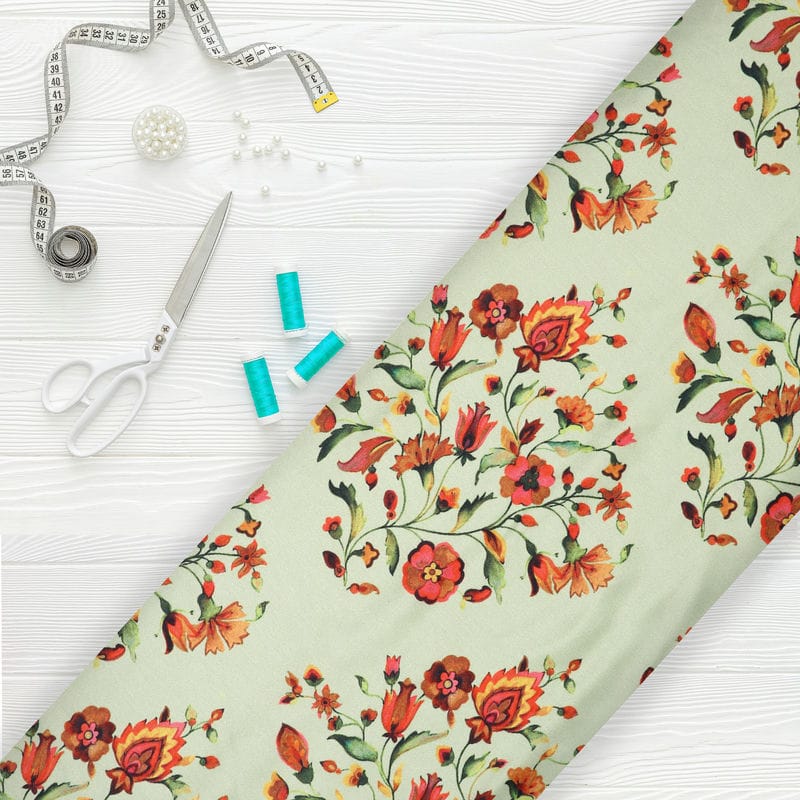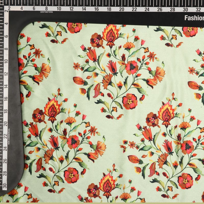 Light Green And Pink Floral Pattern Digital Print Silk Crepe Fabric