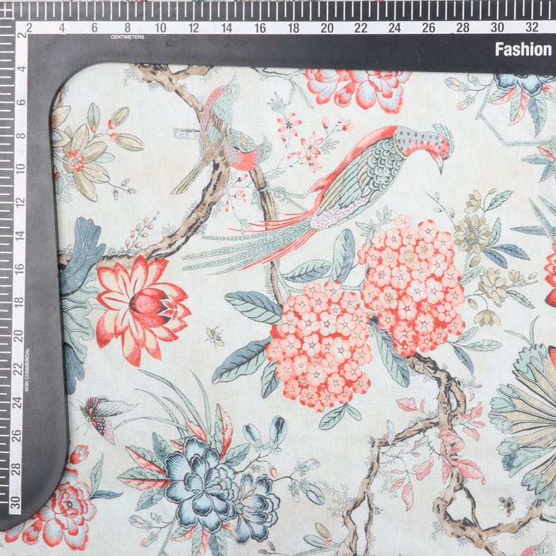 Orange And Green Floral Pattern Digital Print Rayon Fabric