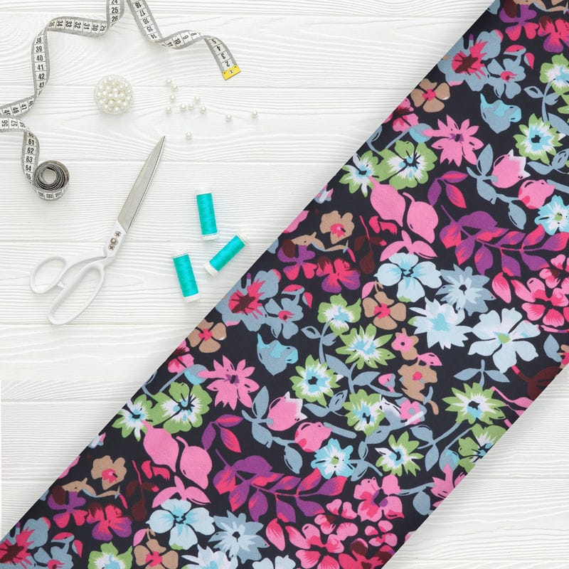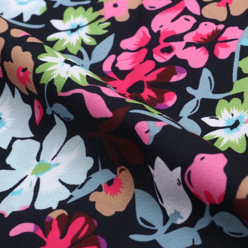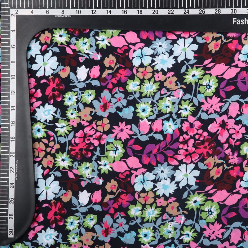 Pink And Mint Green Floral Pattern Digital Print American Crepe Fabric