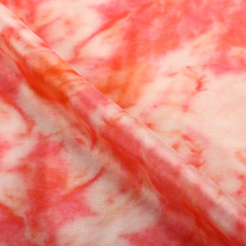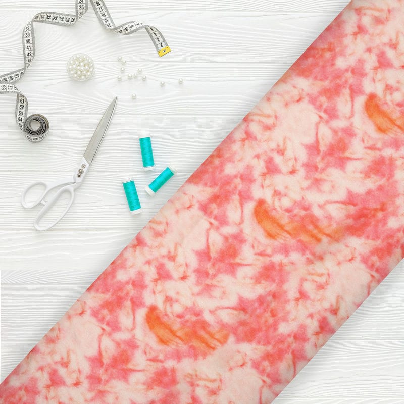 Pink And Orange Floral Pattern Digital Print Silk Crepe Fabric