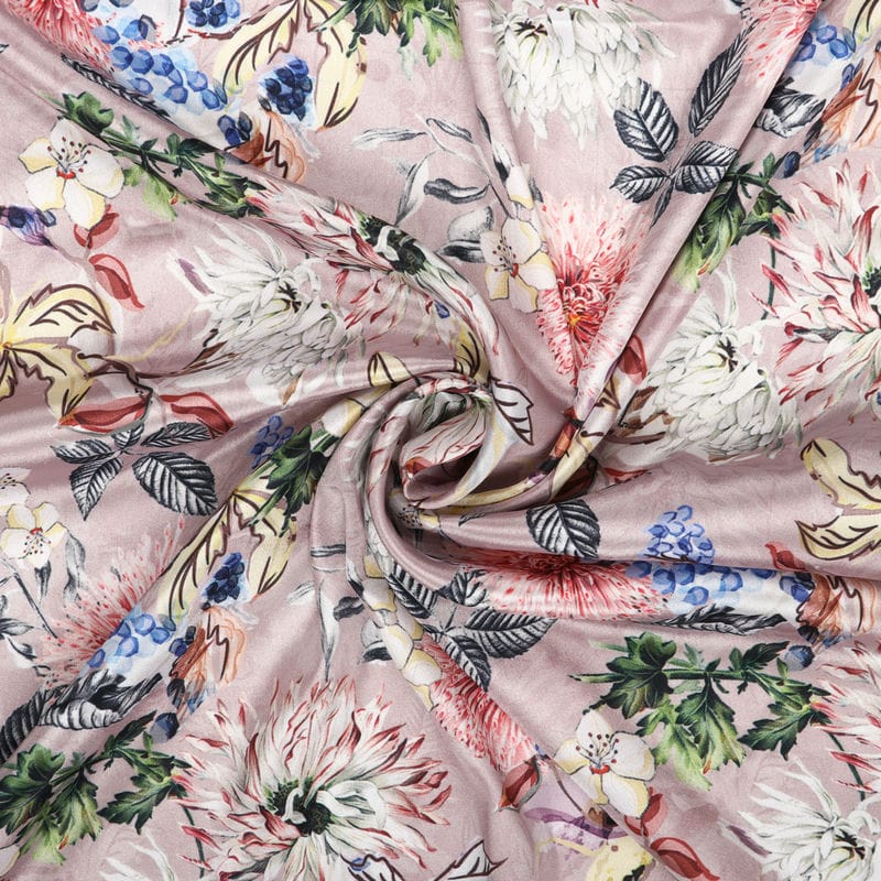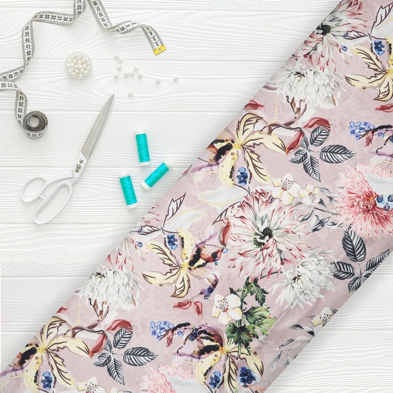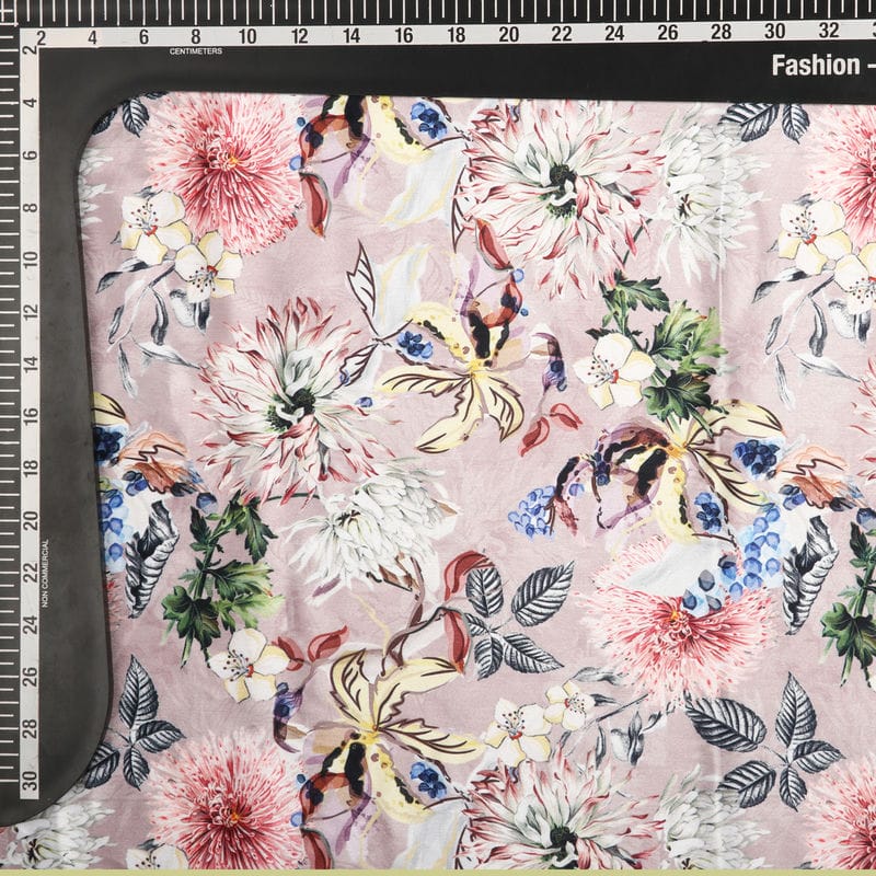 Pink And White Floral Pattern Digital Print Silk Crepe Fabric