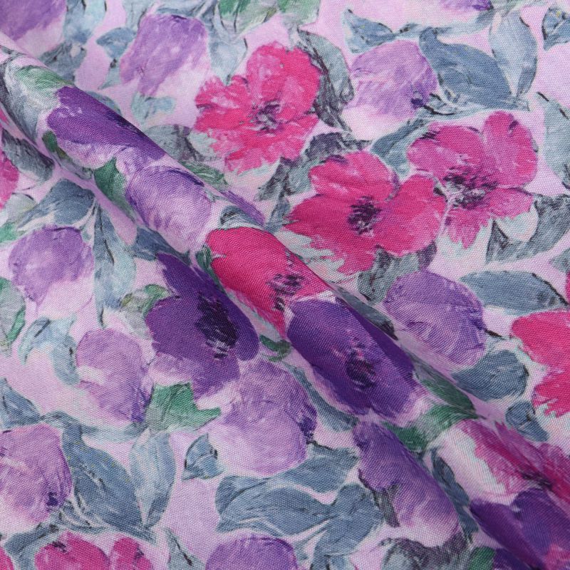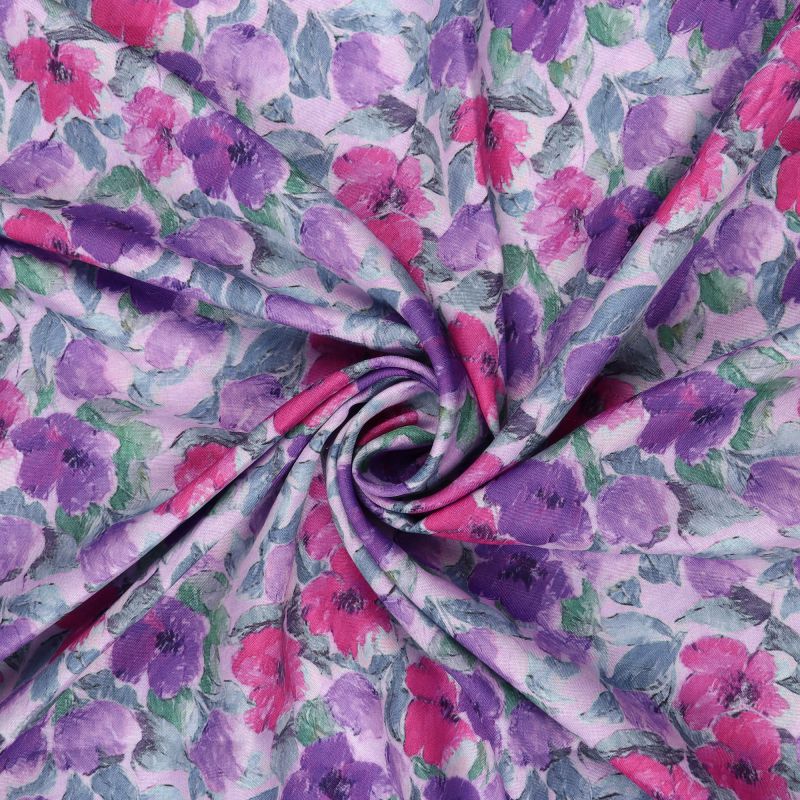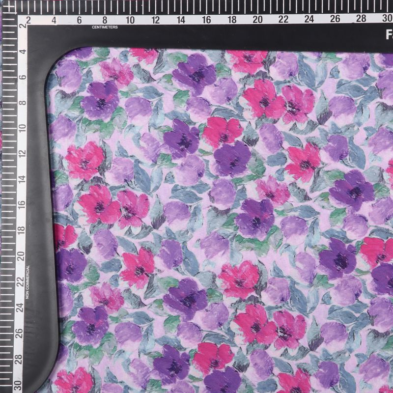 Purple And Pink Floral Pattern Digital Print Crepe Fabric