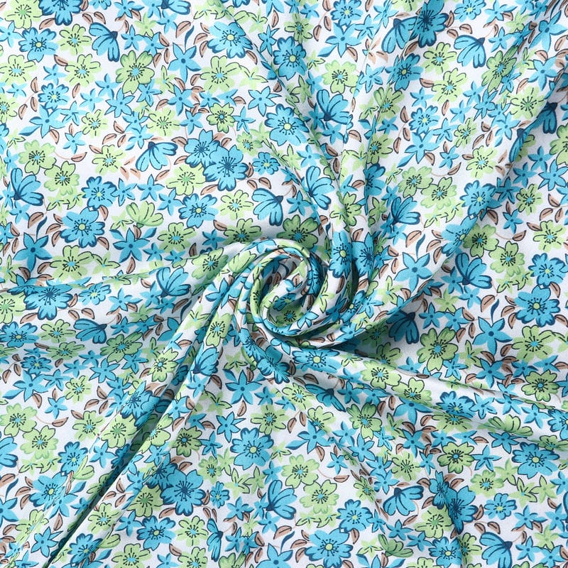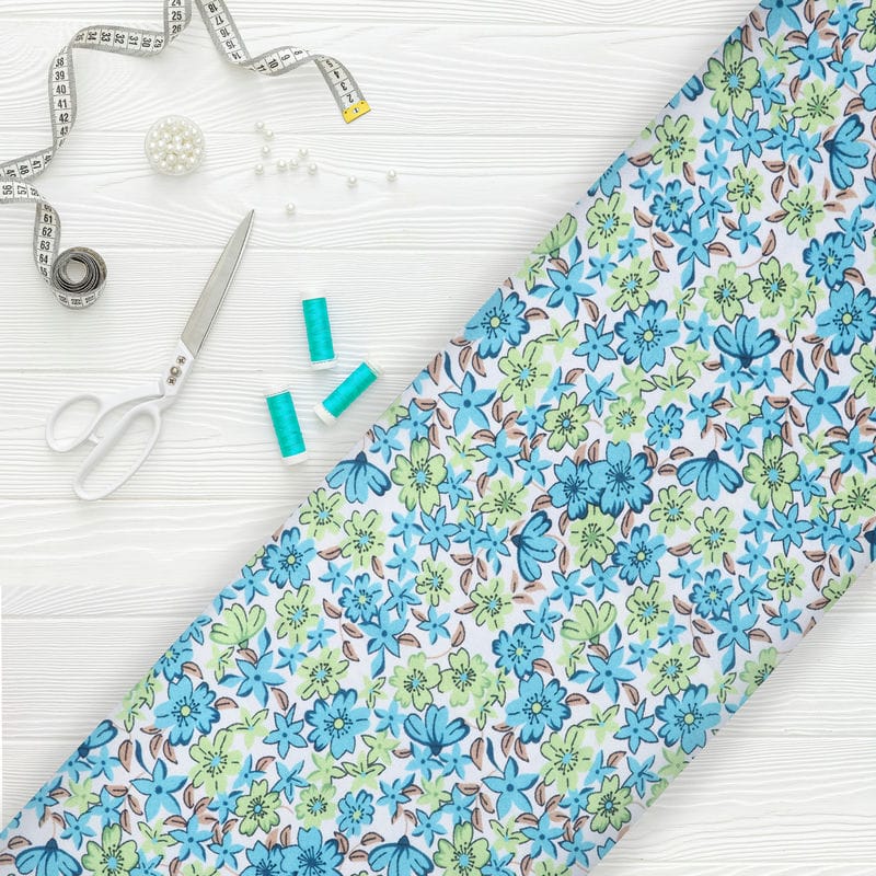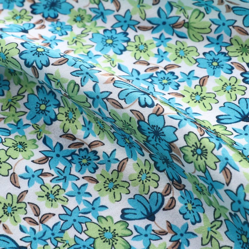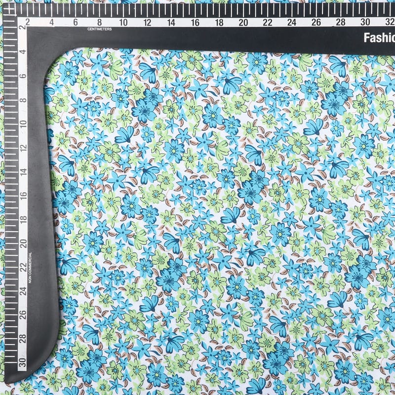 Sky Blue And Mint Green Floral Pattern Digital Print Japan Satin Fabric