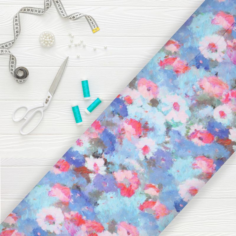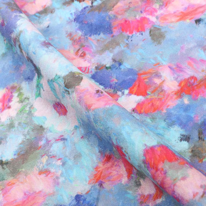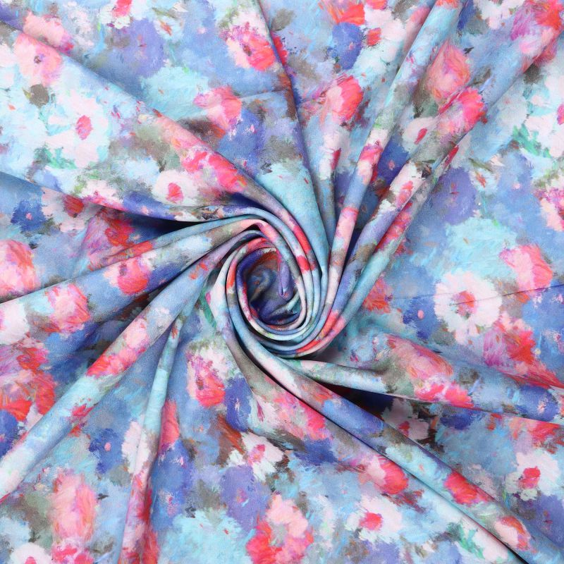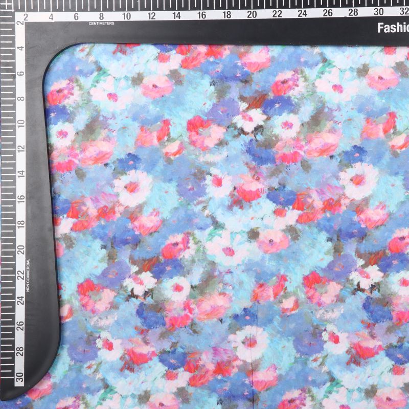 Sky Blue And Pink Floral Pattern Digital Print Crepe Fabric
