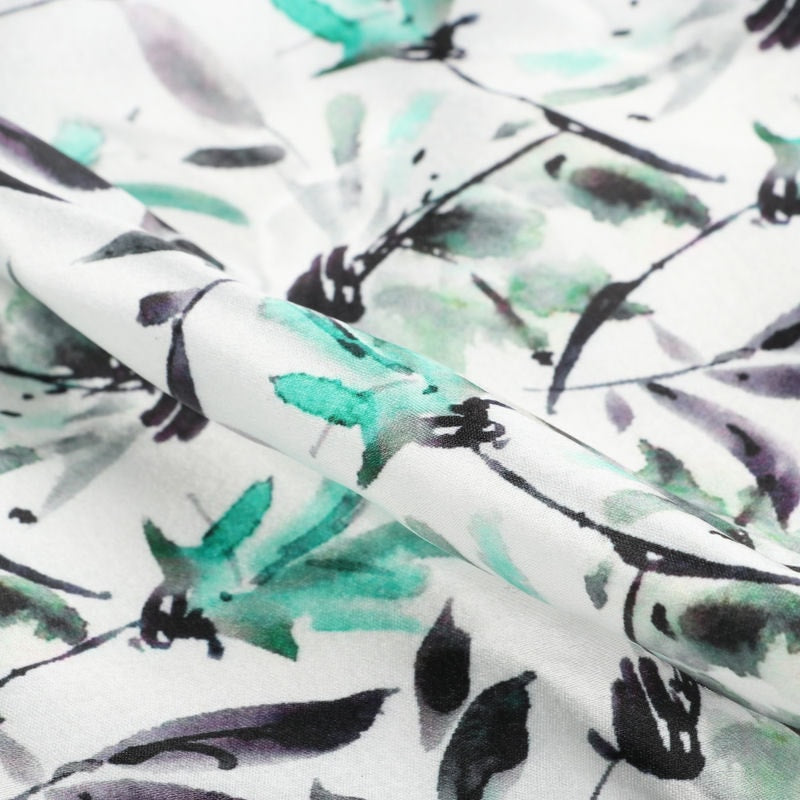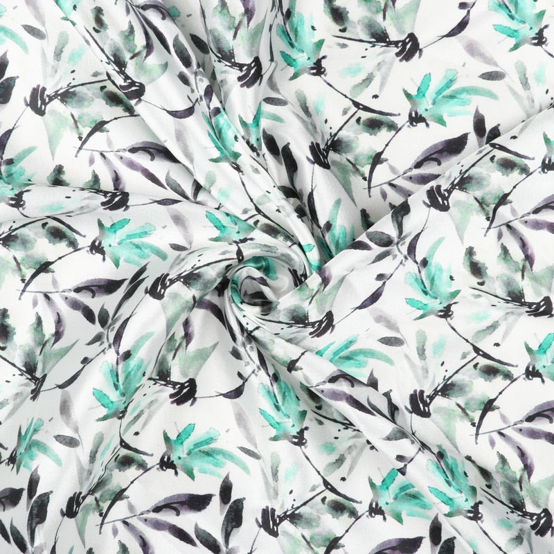 Turquoise And Green Floral Pattern Digital Print Japan Satin Fabric