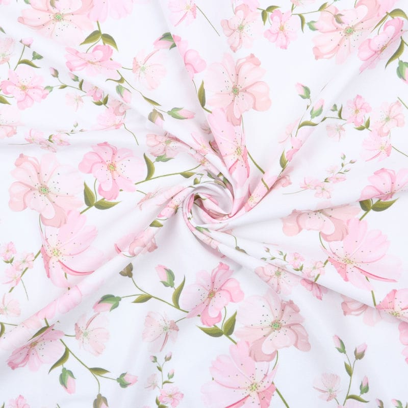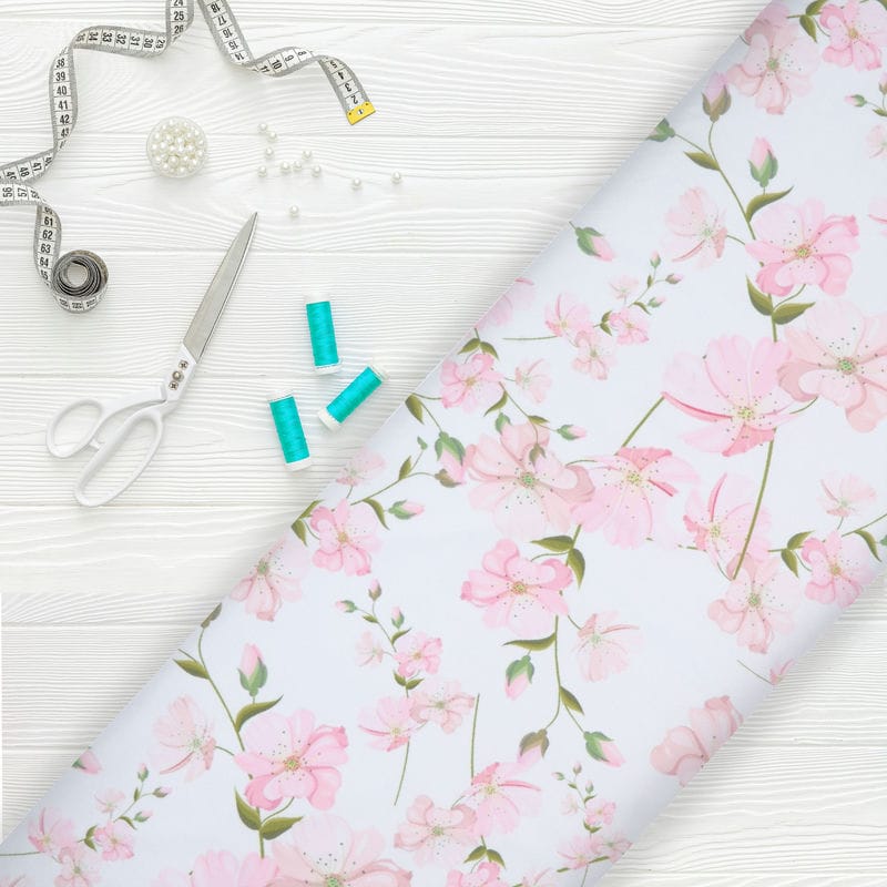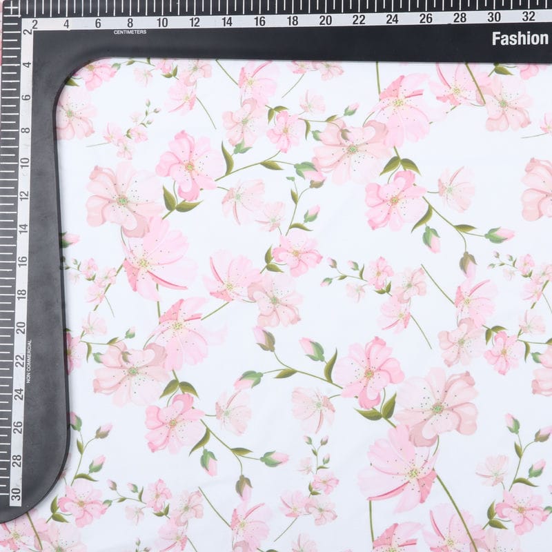 White And Baby Pink Floral Pattern Digital Print Crepe Fabric