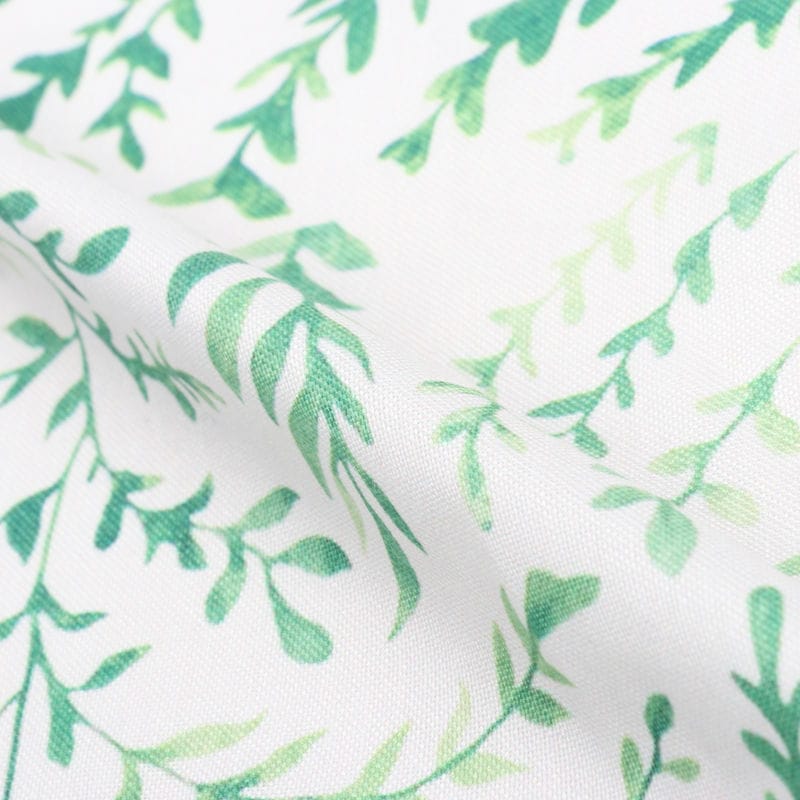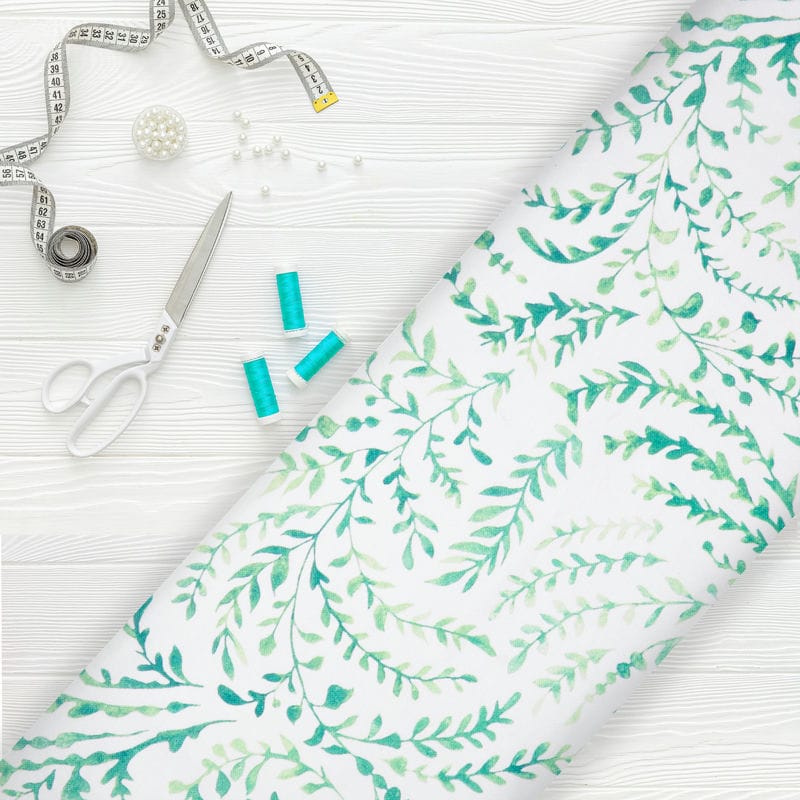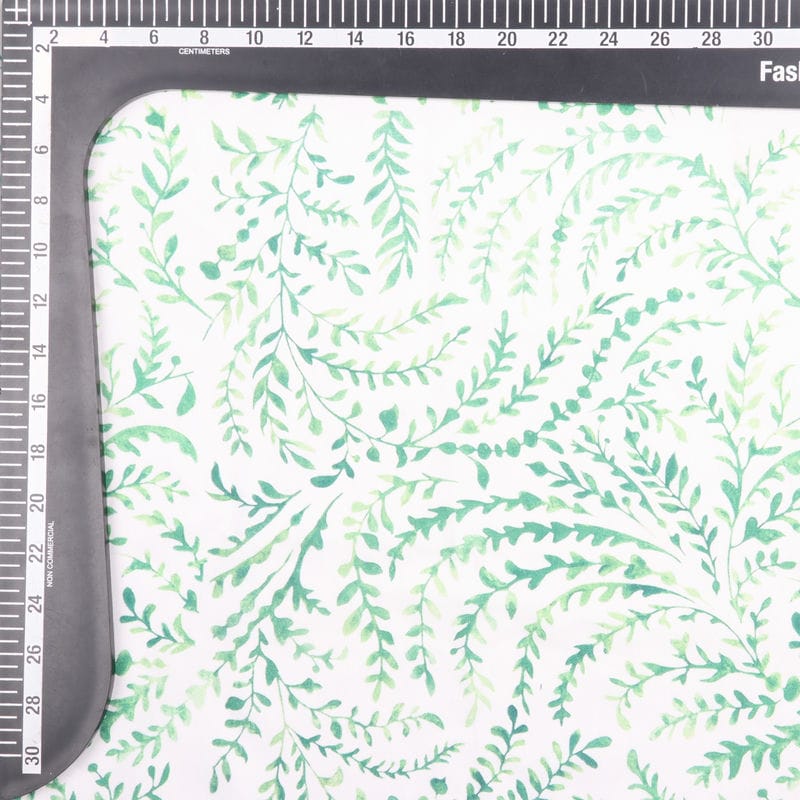White And Green Floral Pattern Digital Print Rayon Fabric