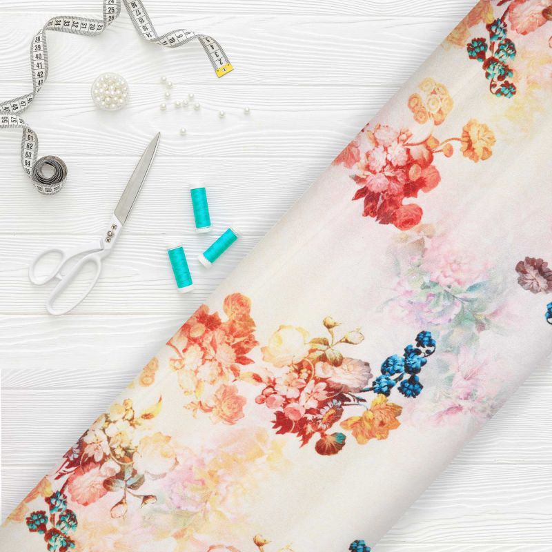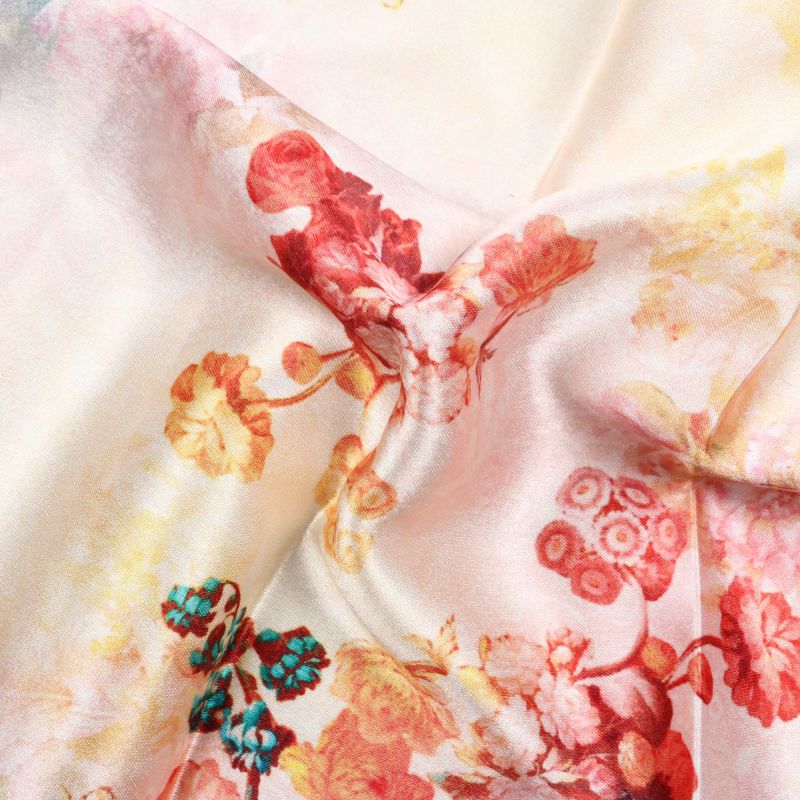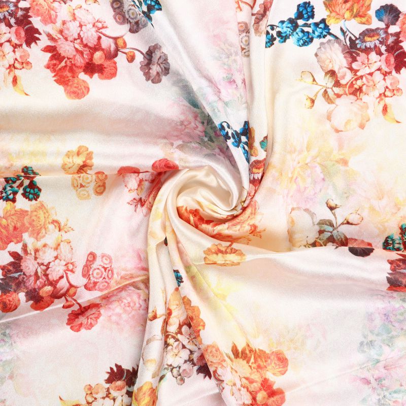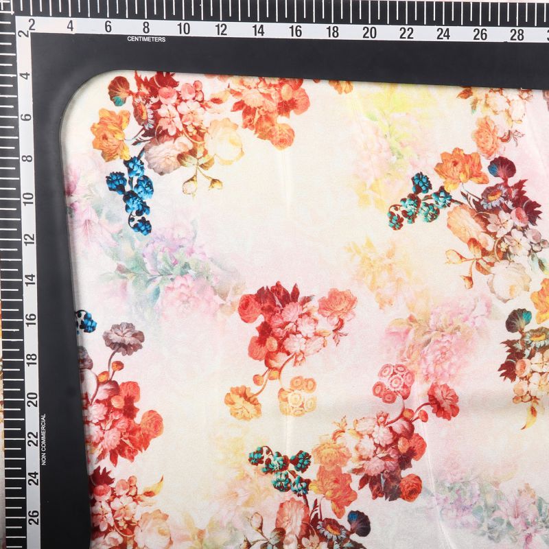 White And Red Floral Pattern Digital Print Japan Satin Fabric