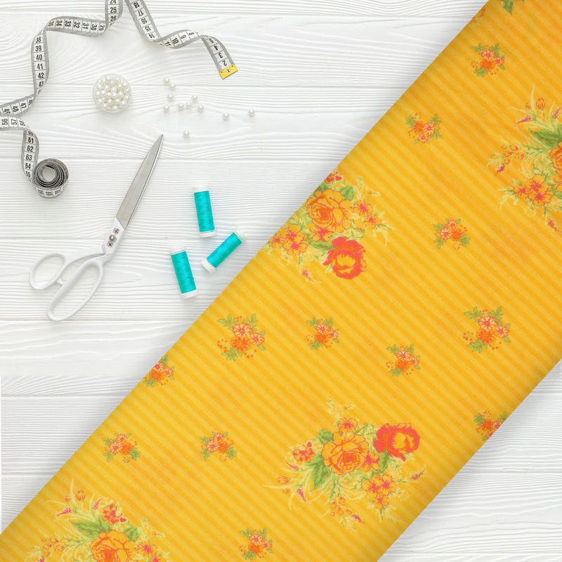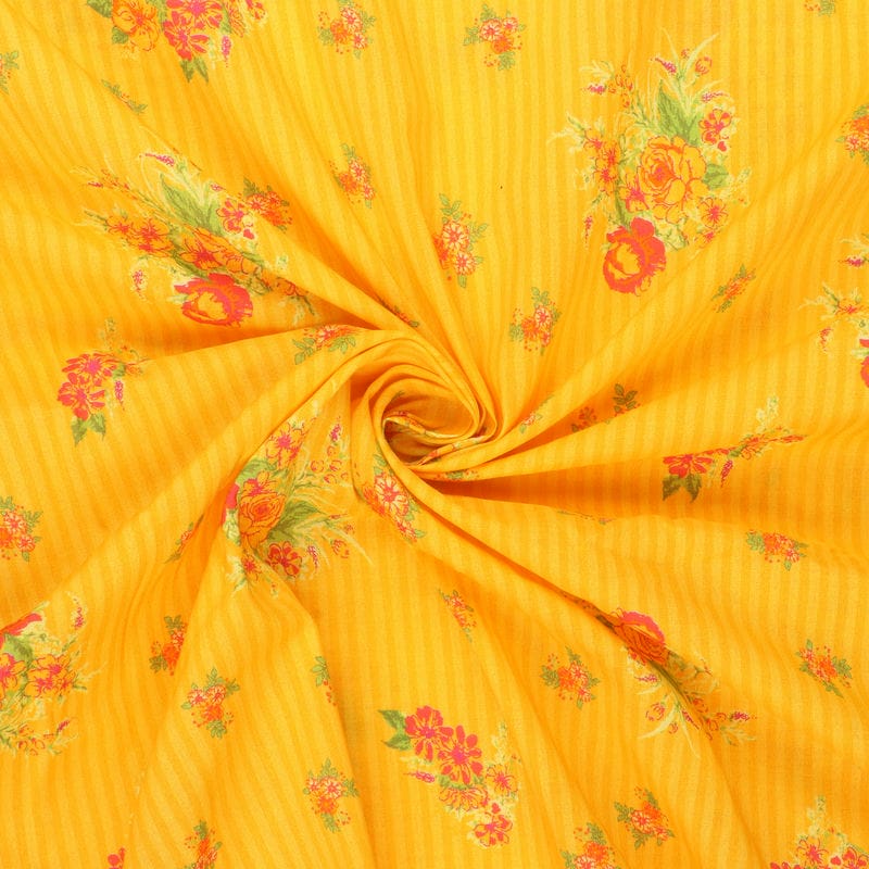 Yellow And Red Floral Pattern Screen Print Cotton Fabric