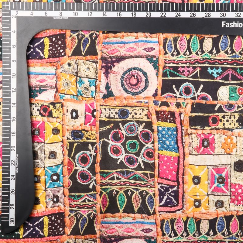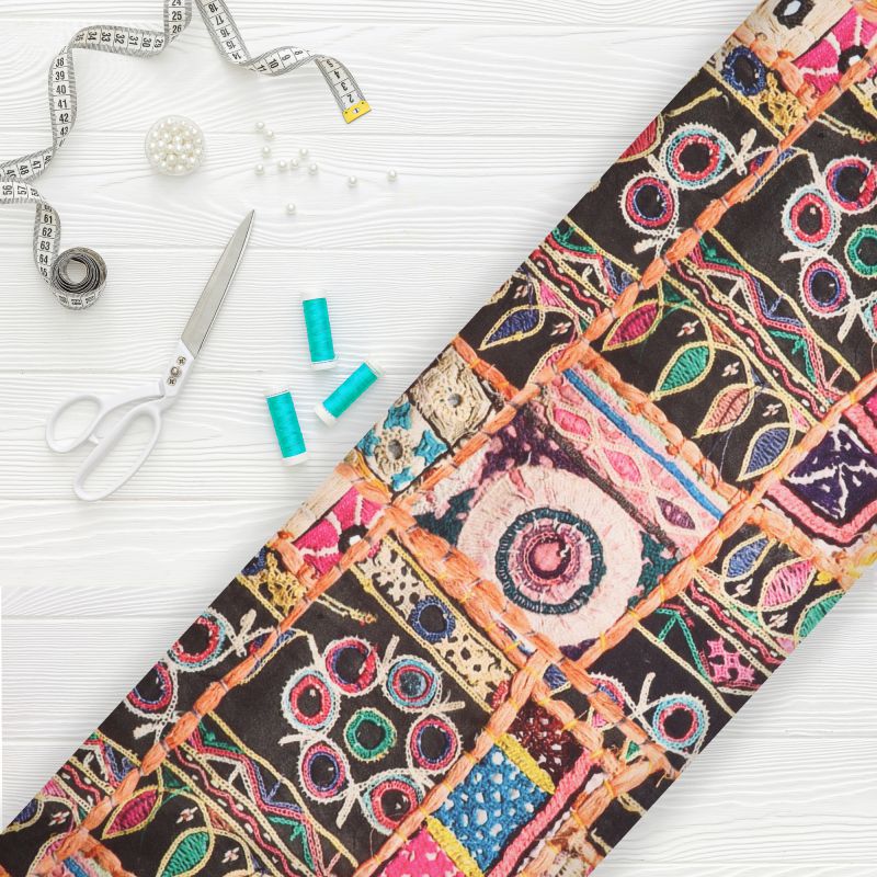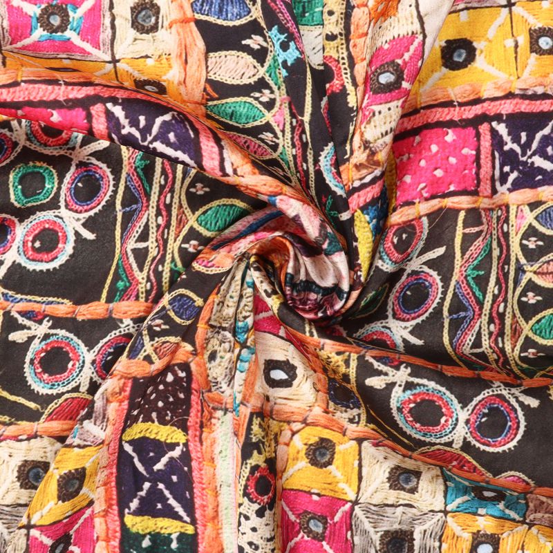 Black And Yellow Gamthi Pattern Digital Print Fabric