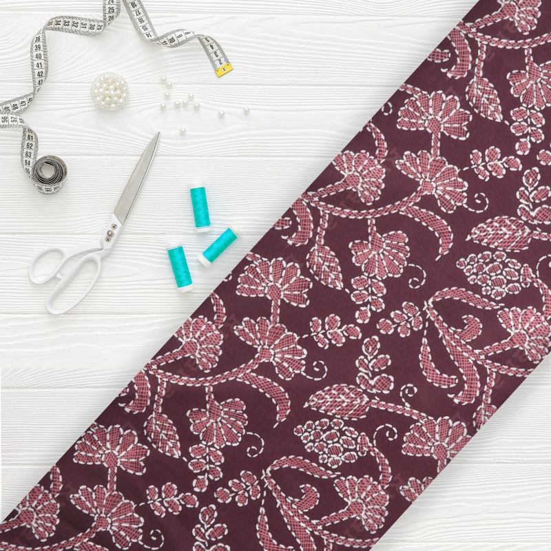 Brown And Hippie Pink Gamthi Pattern Digital Print Fabric