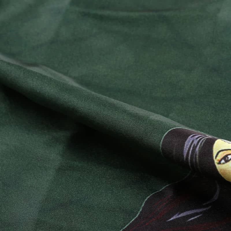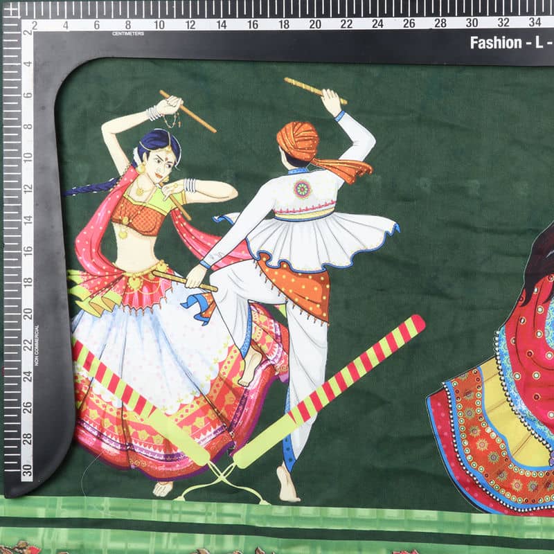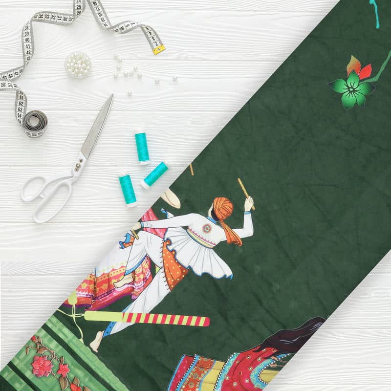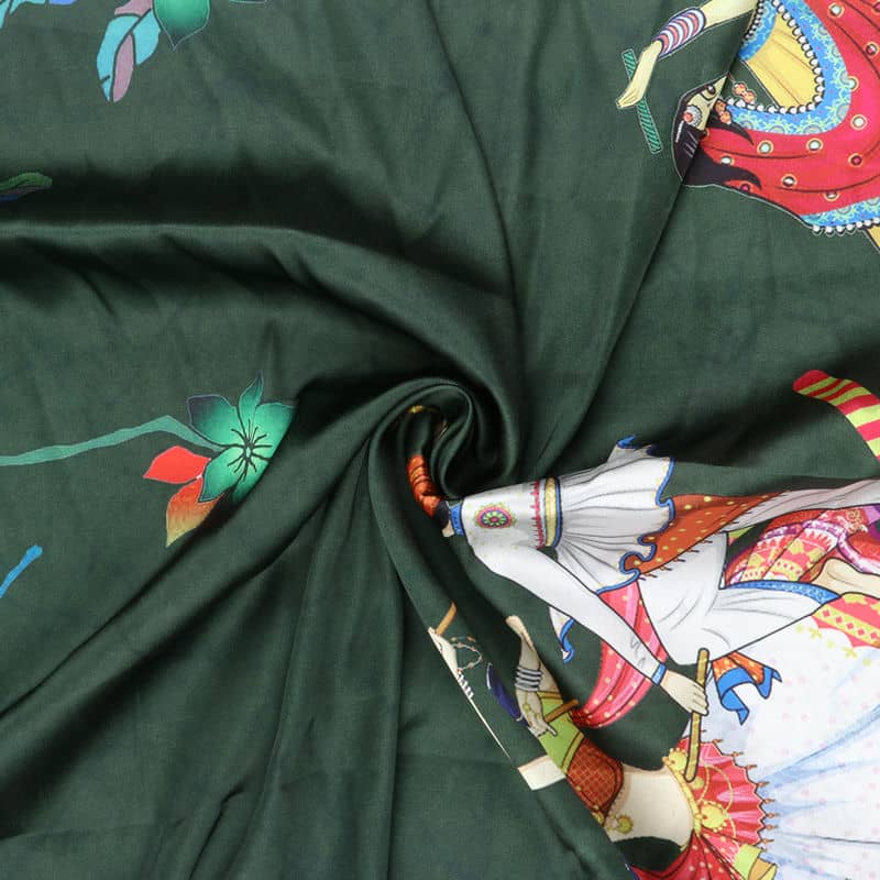 Dark Green And Pink Gamthi Pattern Digital Print Japan Satin Fabric