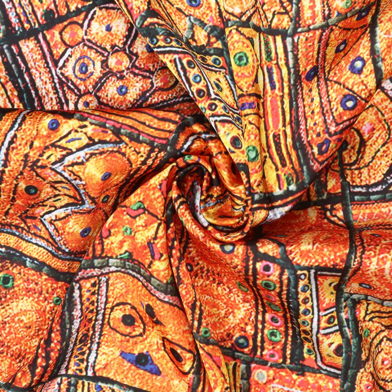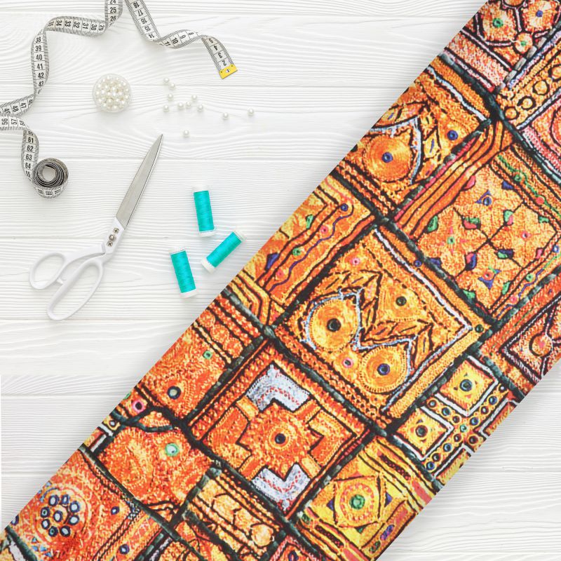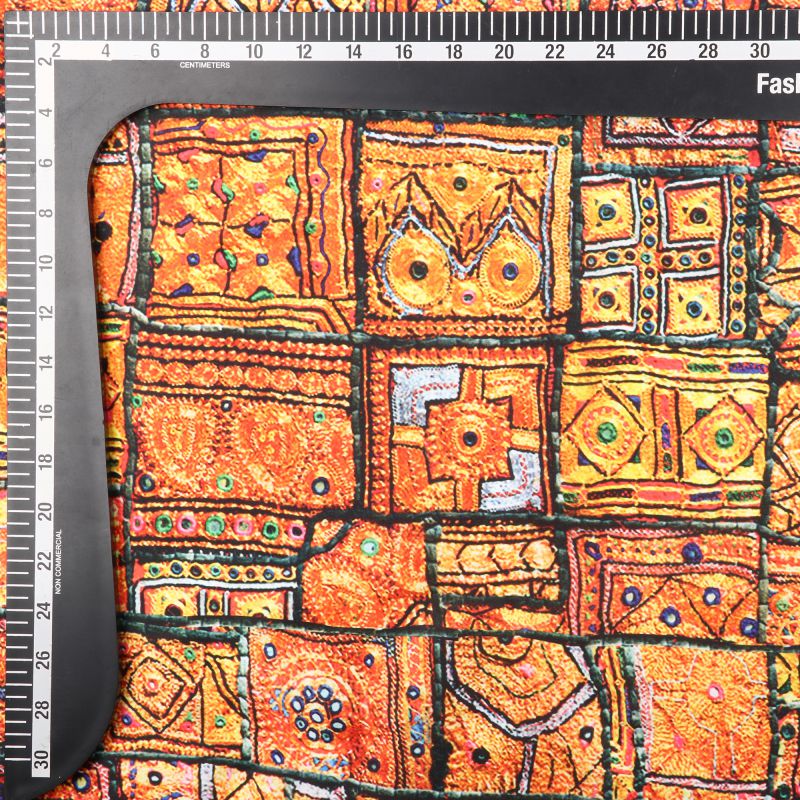 Golden Yellow And Black Gamthi Pattern Digital Print Fabric