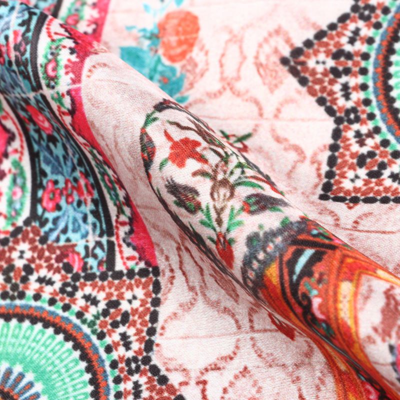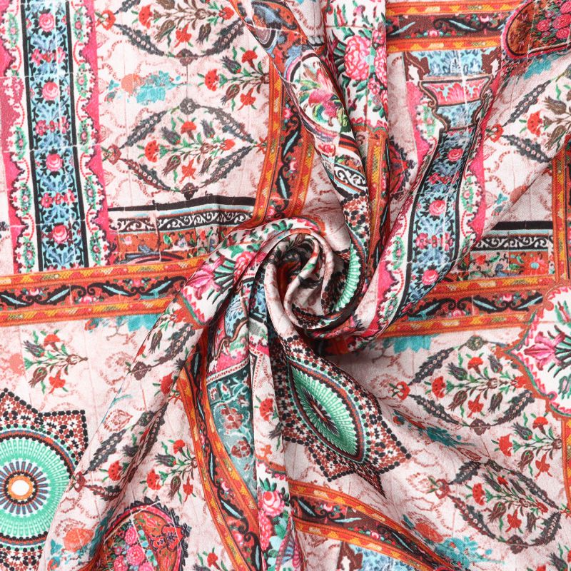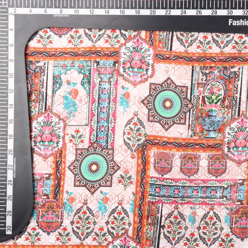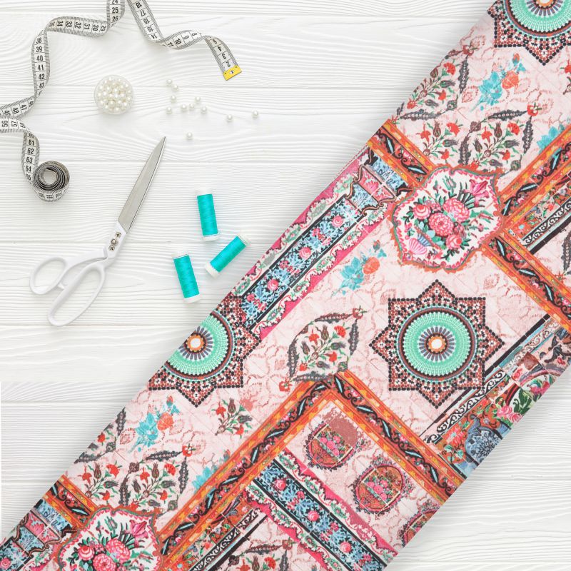 Green And Pink Traditional Pattern Digital Print Fabric