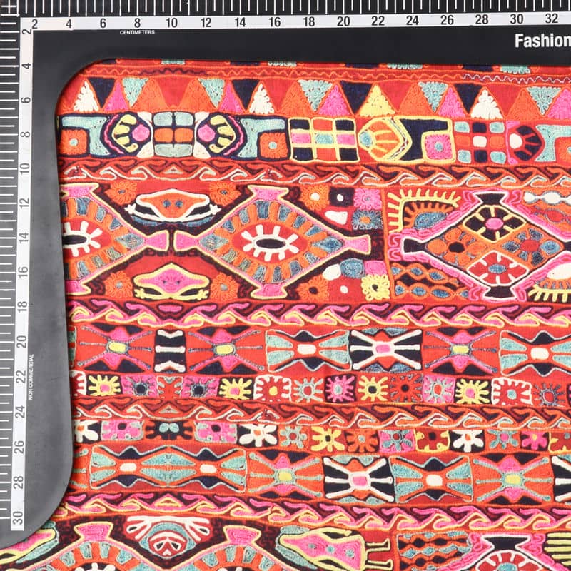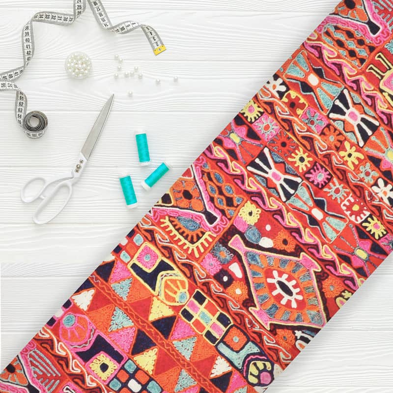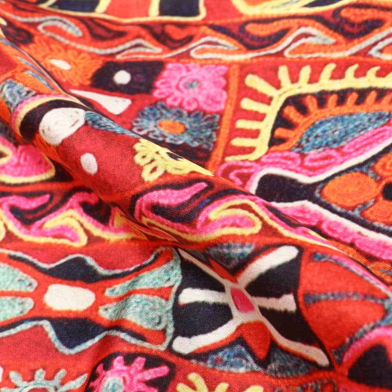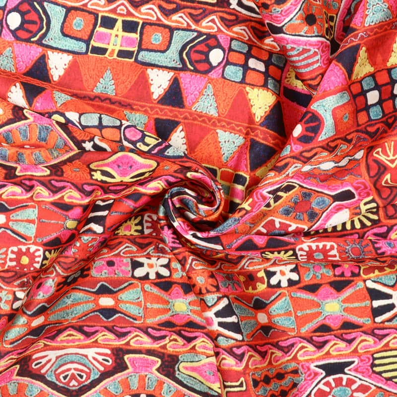 Neon Pink And Red Gamthi Pattern Digital Print Japan Satin Fabric