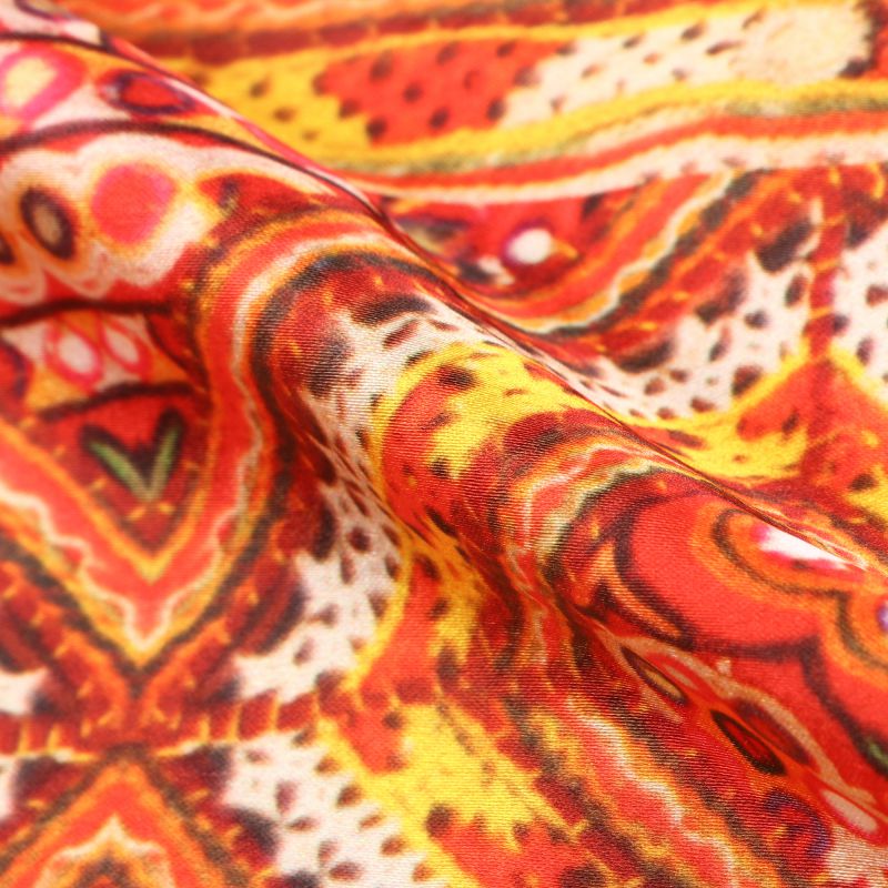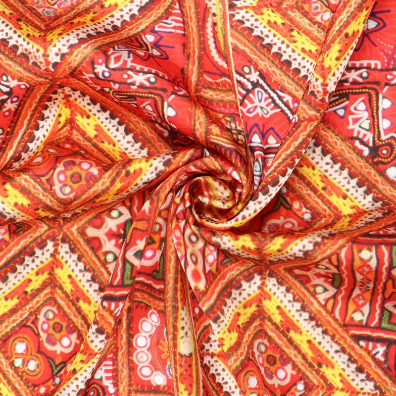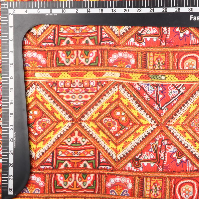 Yellow And Red Gamthi Pattern Digital Print Fabric