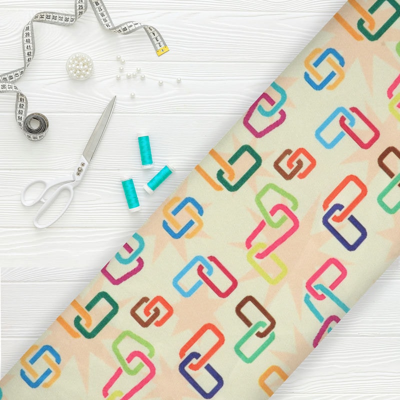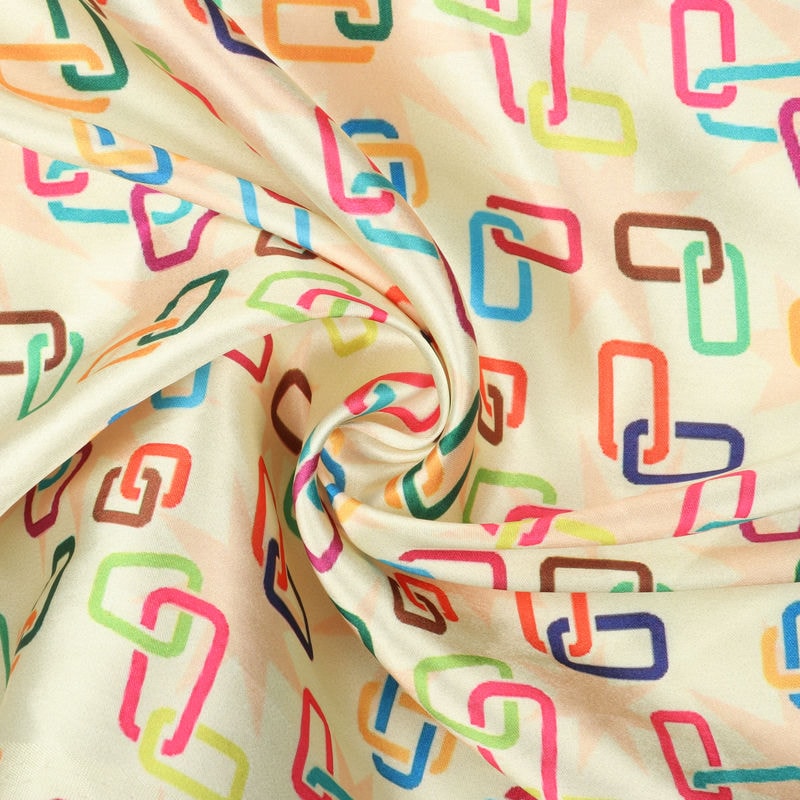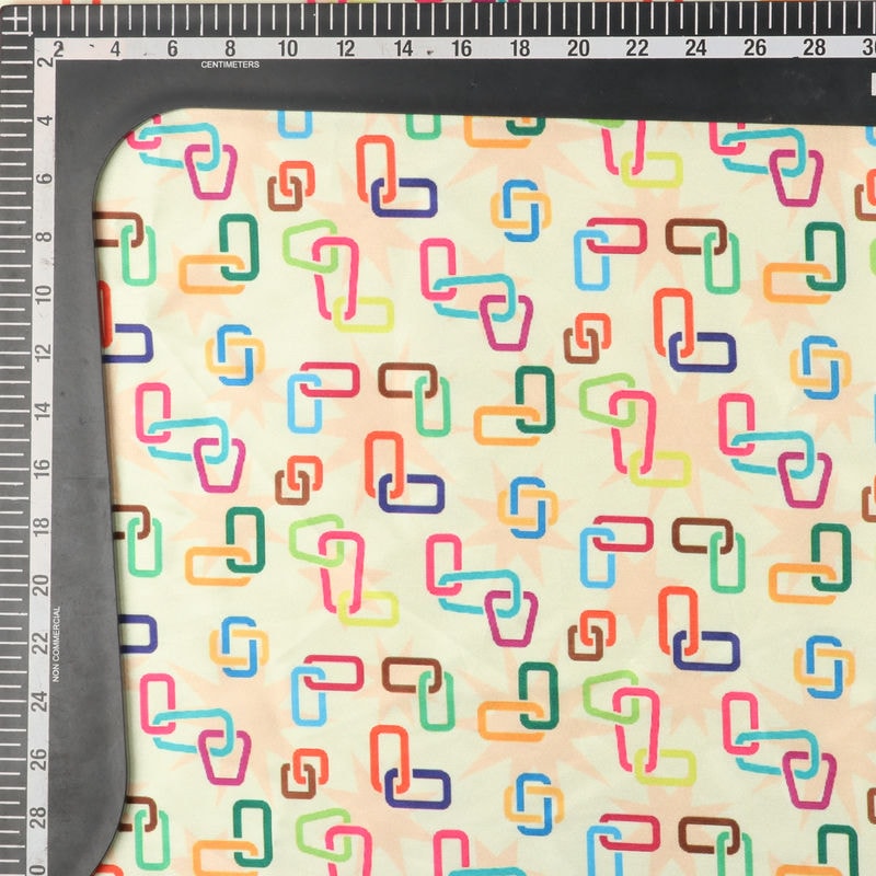 Multi Color Geometric Pattern Digital Print Japan Satin Fabric