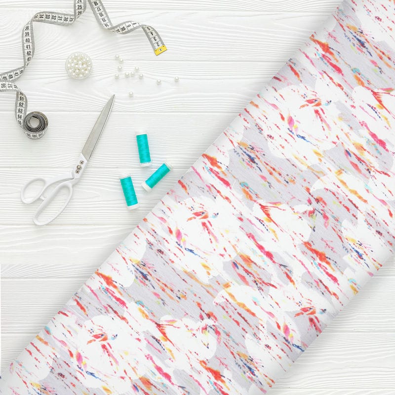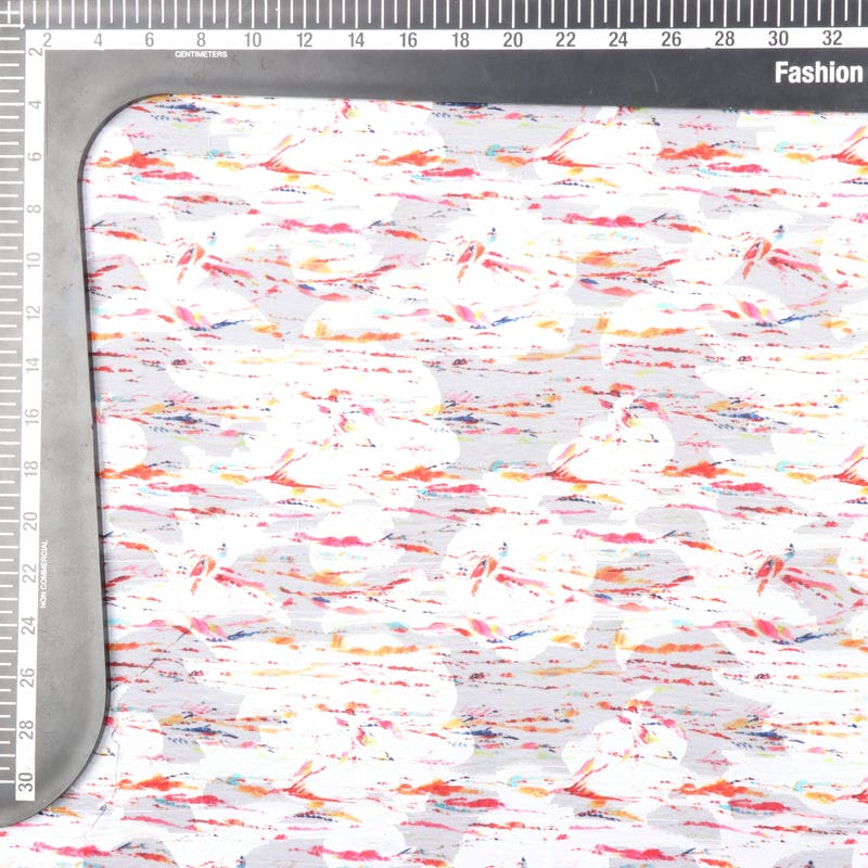 Orange And White Abstract Pattern Digital Print Jacquard Georgette Fabric