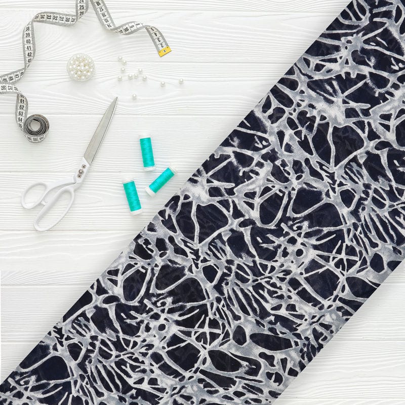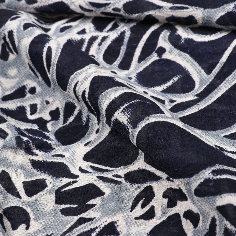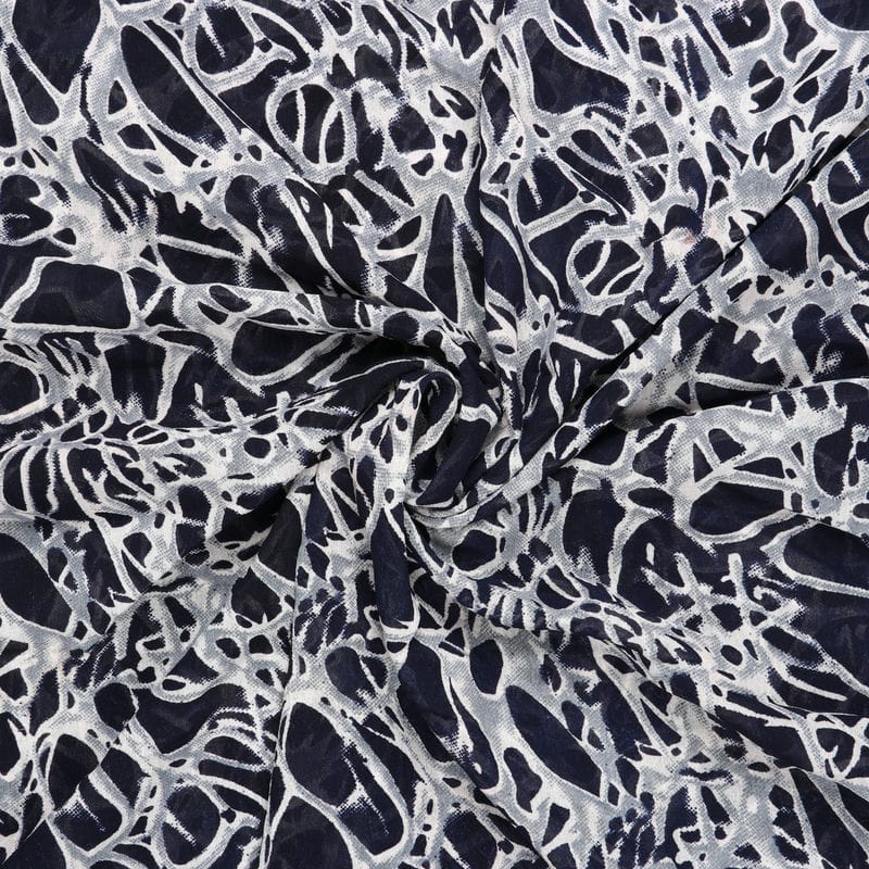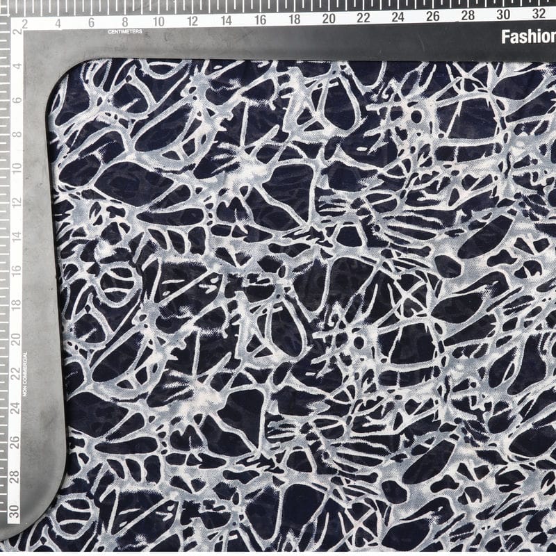 Blue And White Abstract Pattern Screen Print Georgette Fabric (Bulk)
