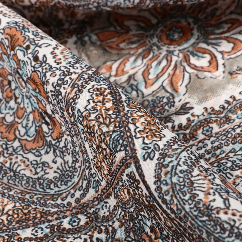 Coffee And Light Grey Traditional Pattern Screen Print Georgette Fabric (Bulk)