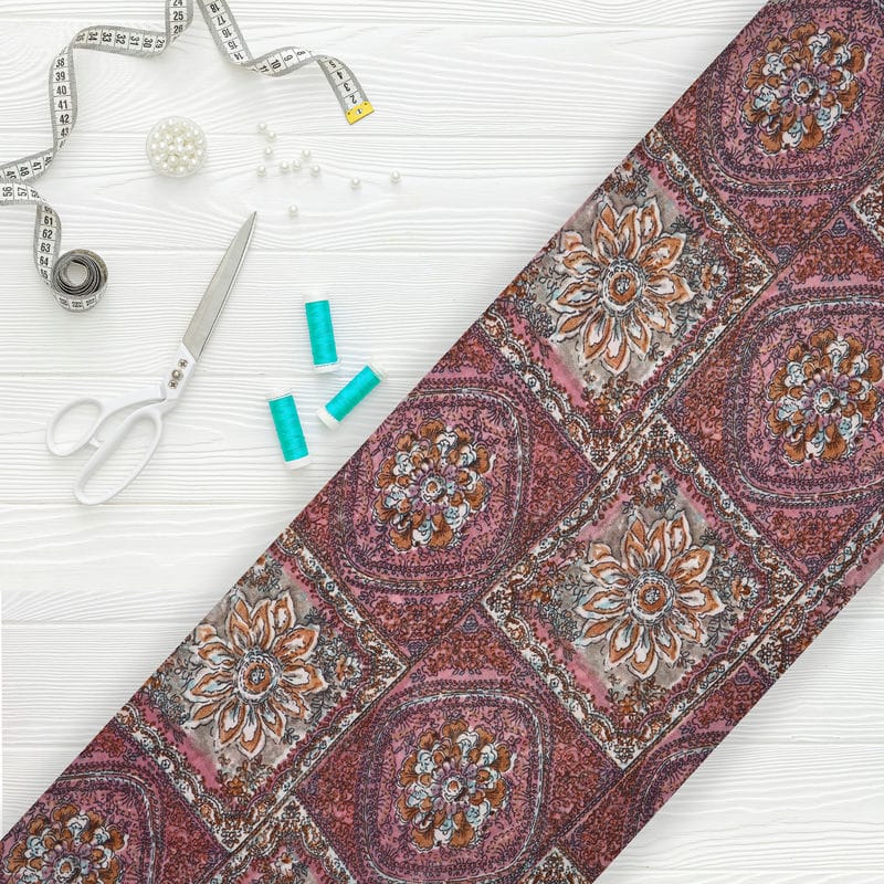 Coffee And Pink Traditional Pattern Screen Print Georgette Fabric (Bulk)
