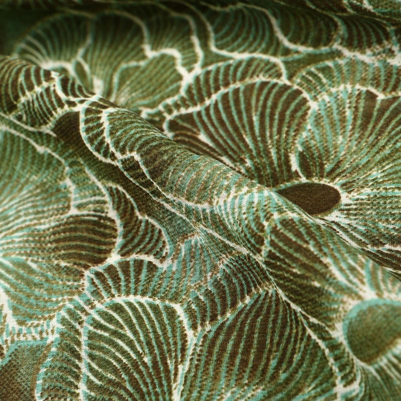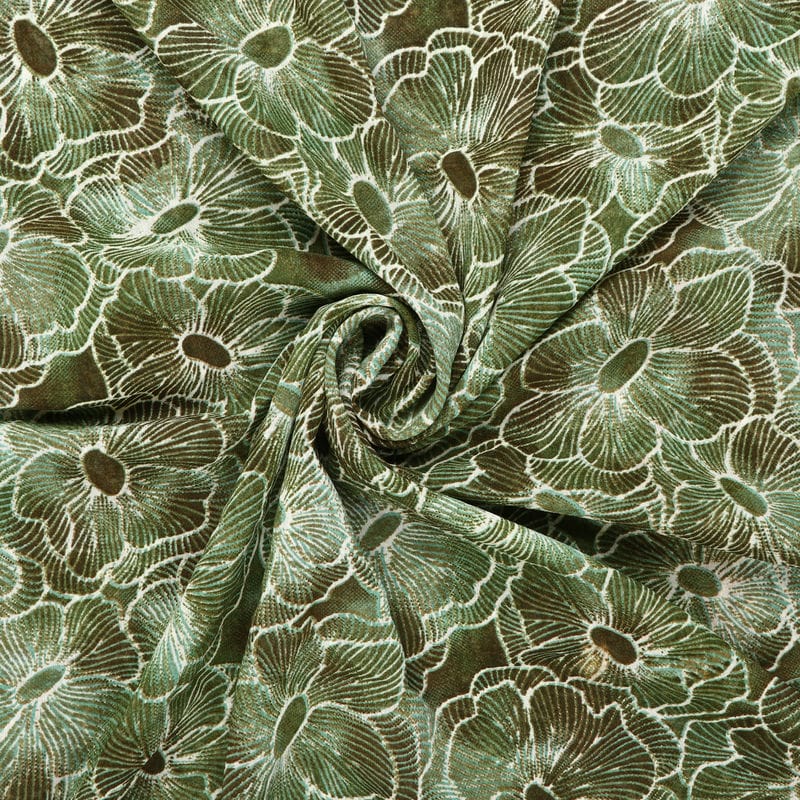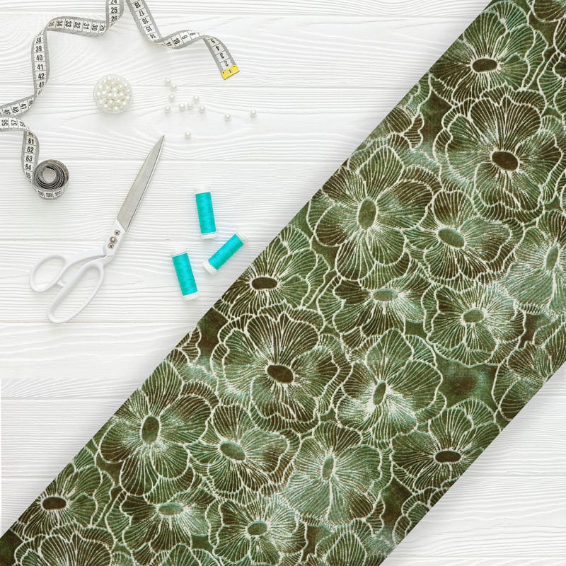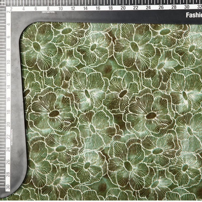 Green And White Floral Pattern Screen Print Georgette Fabric (Bulk)