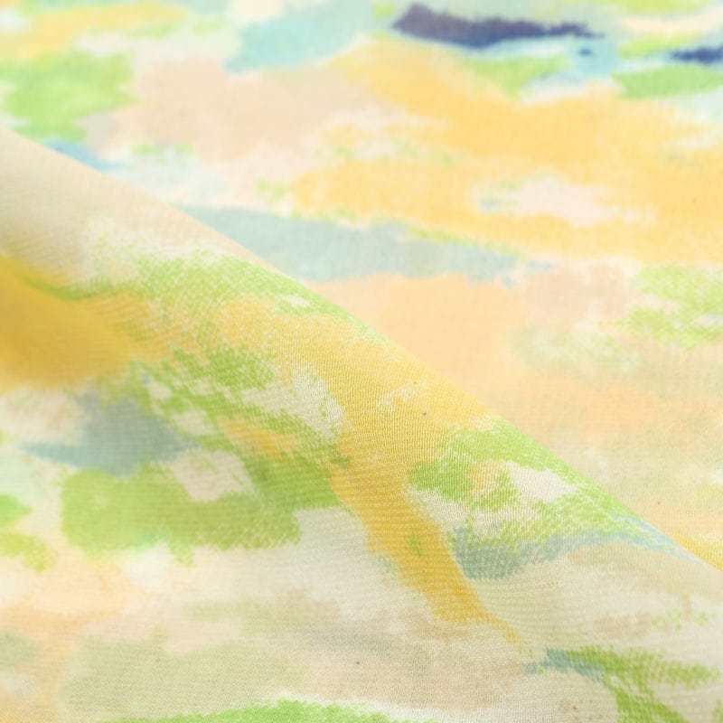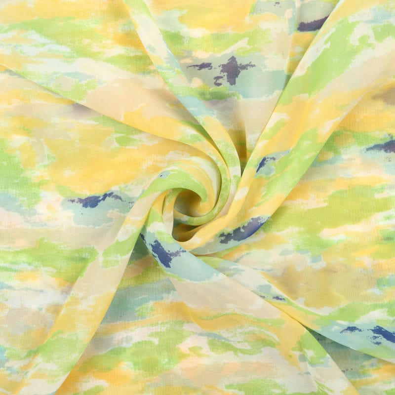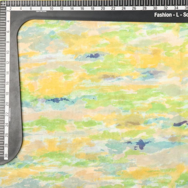 Parrot Green And Yellow Abstract Pattern Screen Print Georgette Fabric