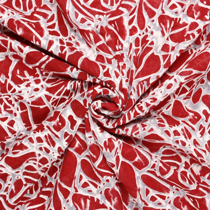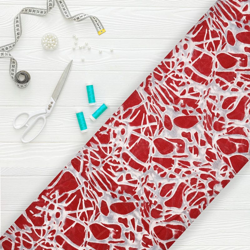 Red And White Abstract Pattern Screen Print Georgette Fabric (Bulk)