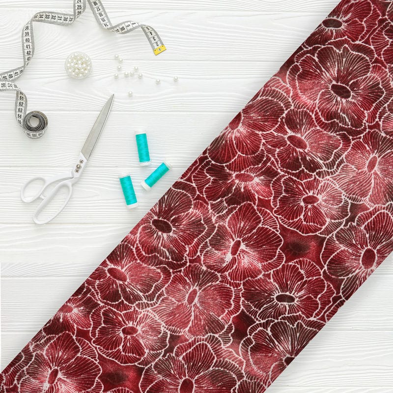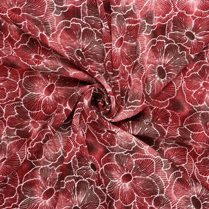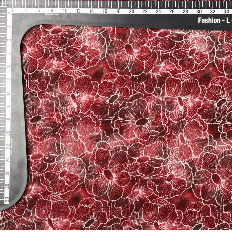 Red And White Floral Pattern Screen Print Georgette Fabric (Bulk)