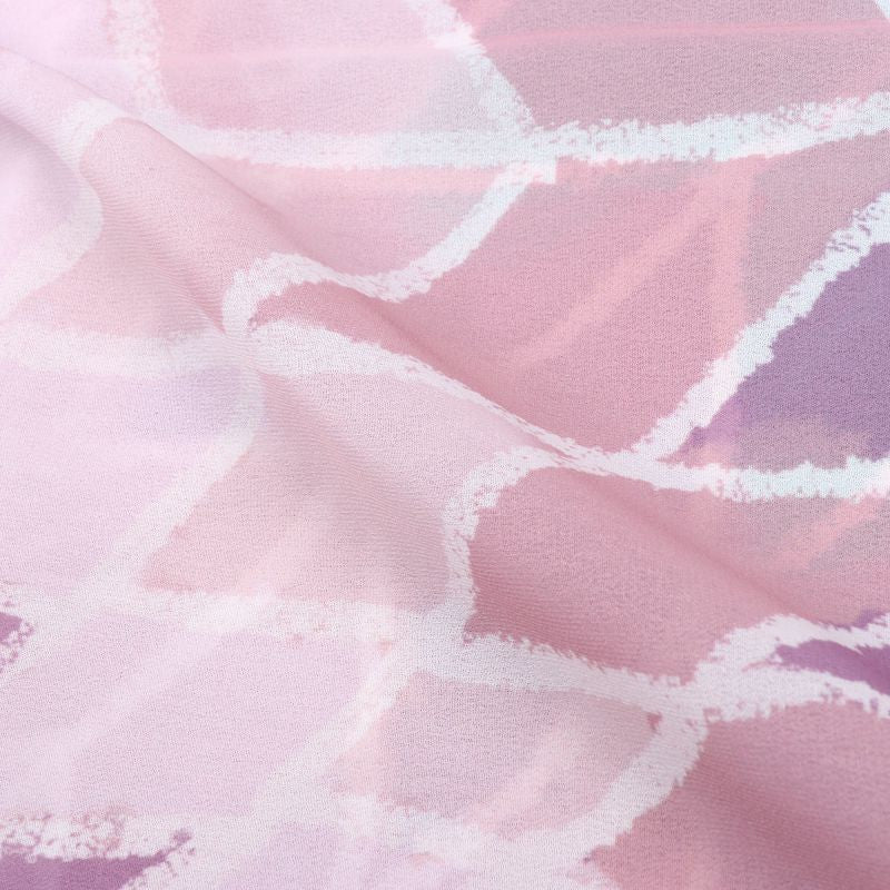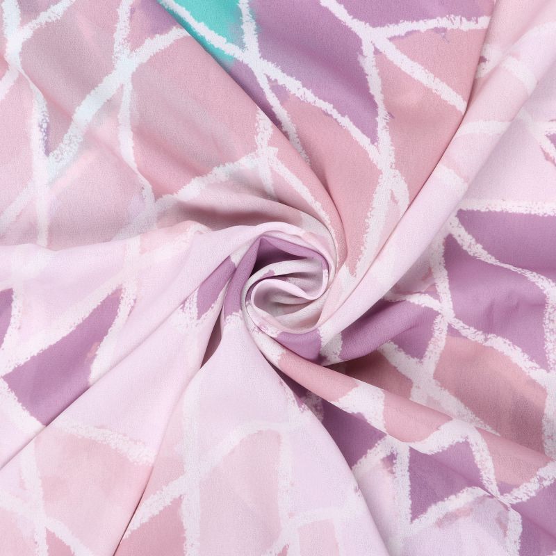 Baby Pink And Green Geometric Pattern Digital Print Georgette Fabric