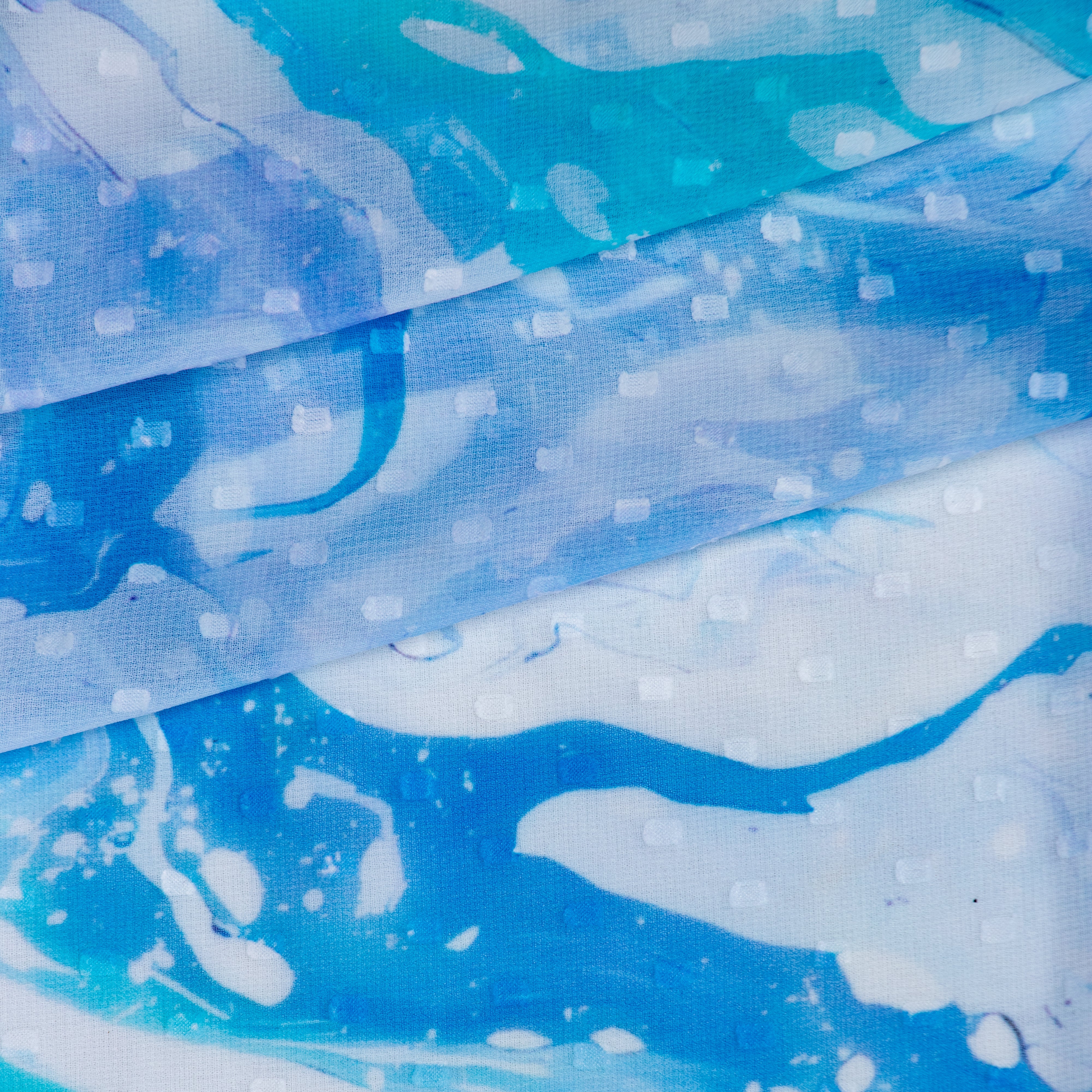 Blue and Aqua Blue Marble Pattern digital Print Georgette Dobby Fabric