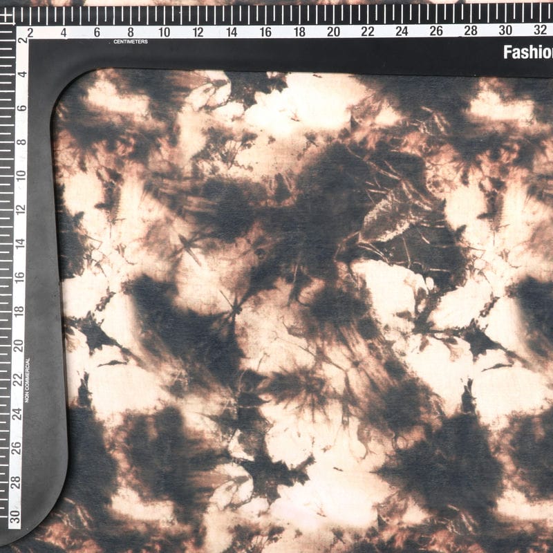 Brown And Beige Tie & Dye Pattern Digital Print Georgette Satin Fabric