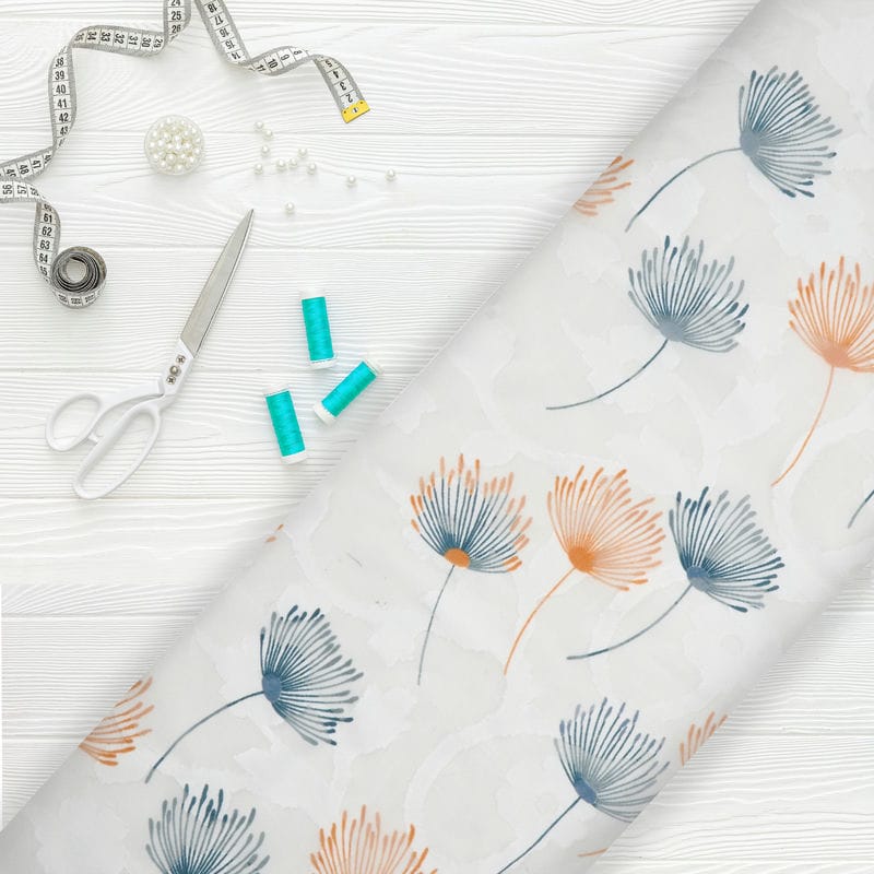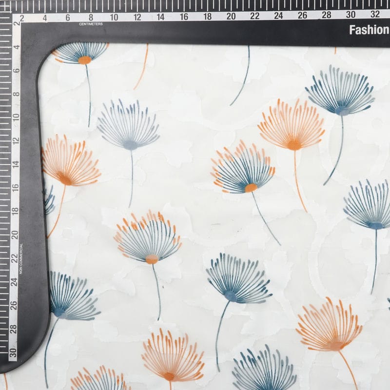 Dark Orange And White Floral Pattern Digital Print Georgette Jacquard Fabric