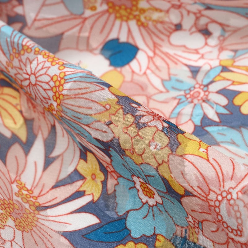 Light Coral And Yellow Floral Pattern Digital Print Georgette Jacqaurd Fabric