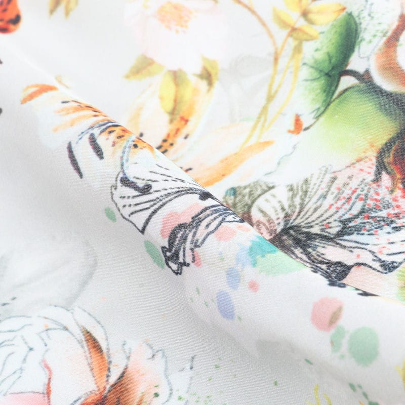 "Introducing our elegant Georgette Satin Fabric, the perfect choice for all your fashion and decor needs. This luxurious fabric is made from a blend of silk and polyester, giving it a silky touch that is soft to the touch and drapes beautifully. The fluid and lightweight nature of georgette satin makes it a great choice for creating flowy dresses, skirts and blouses. Additionally, it's perfect for window treatments, bedding, and other home decor projects. Whether you're a designer, tailor, or DIY enthusiast, this versatile fabric is sure to impress. With its sleek, elegant look and luxurious feel, georgette satin is sure to become your go-to fabric for all your special projects."